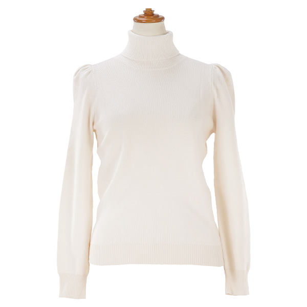 プチハイネックのデザインなのでノーカラージャケットと相性◎
