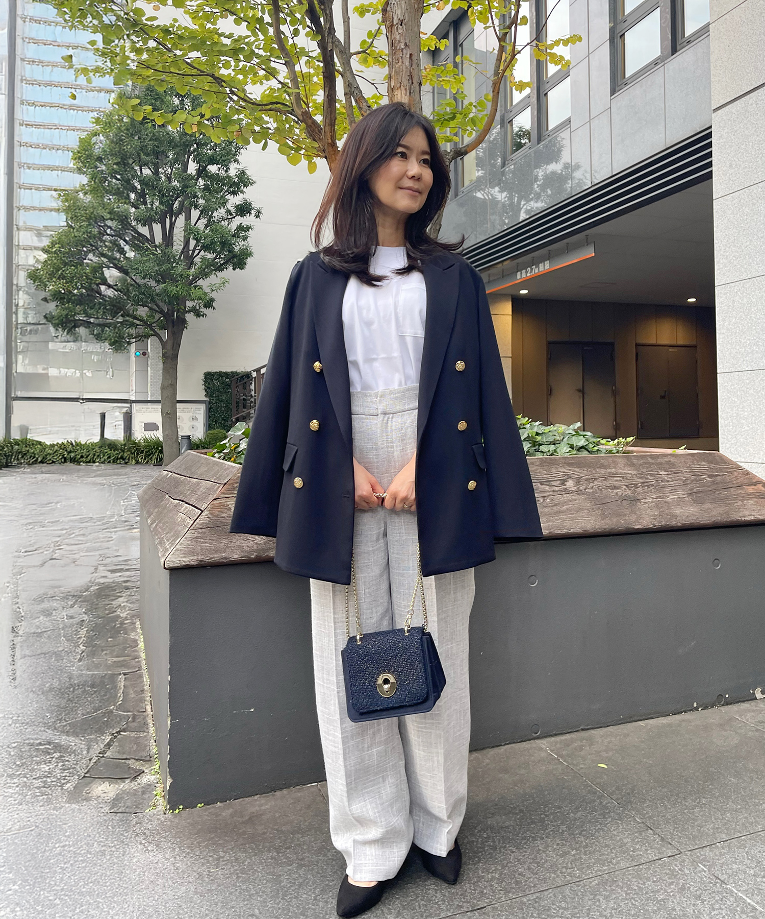 マニッシュなジャケットパンツスタイルをさらっと着こなす、が今季のテーマです🤍