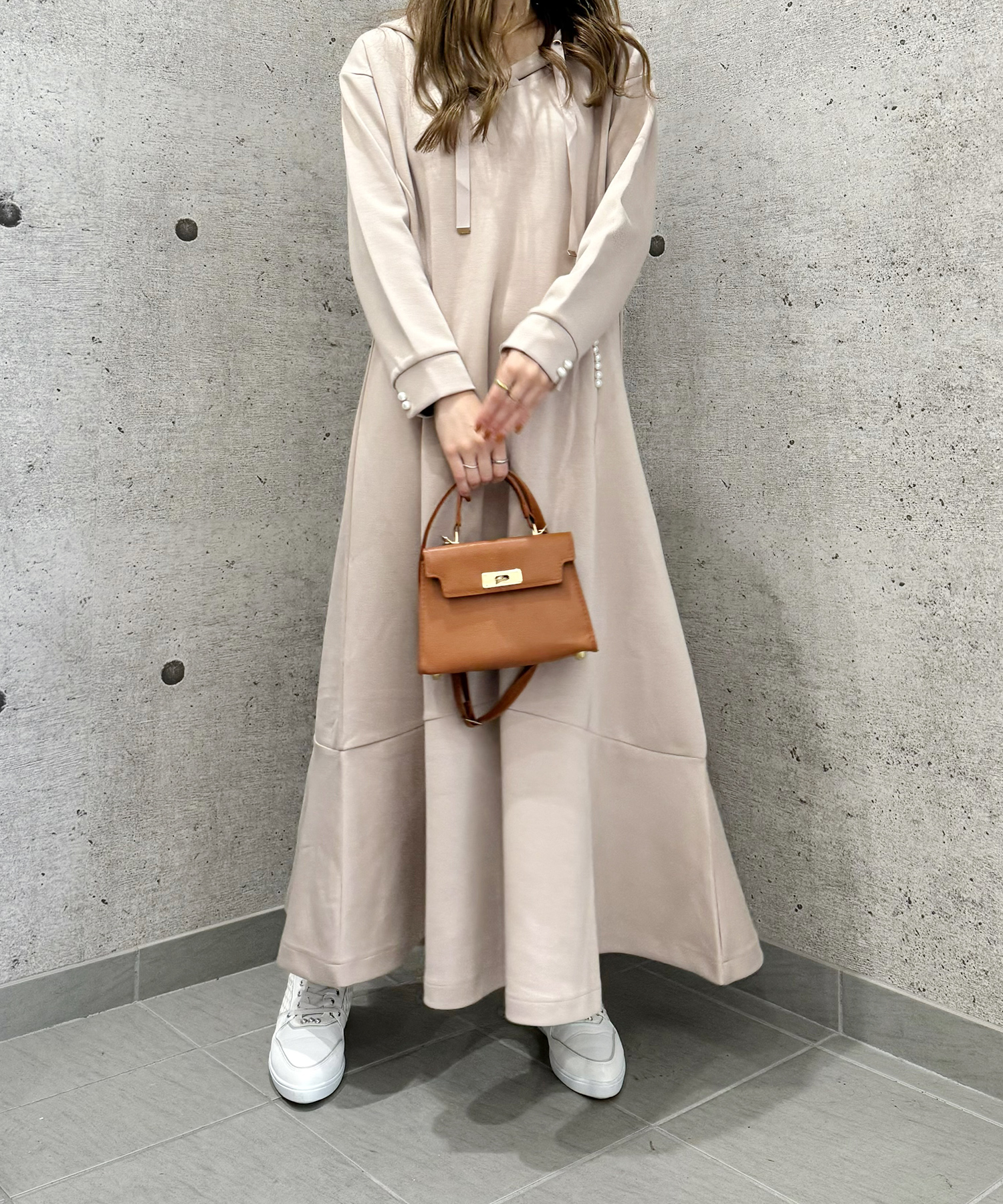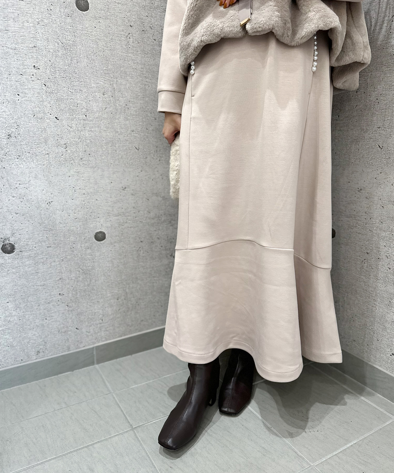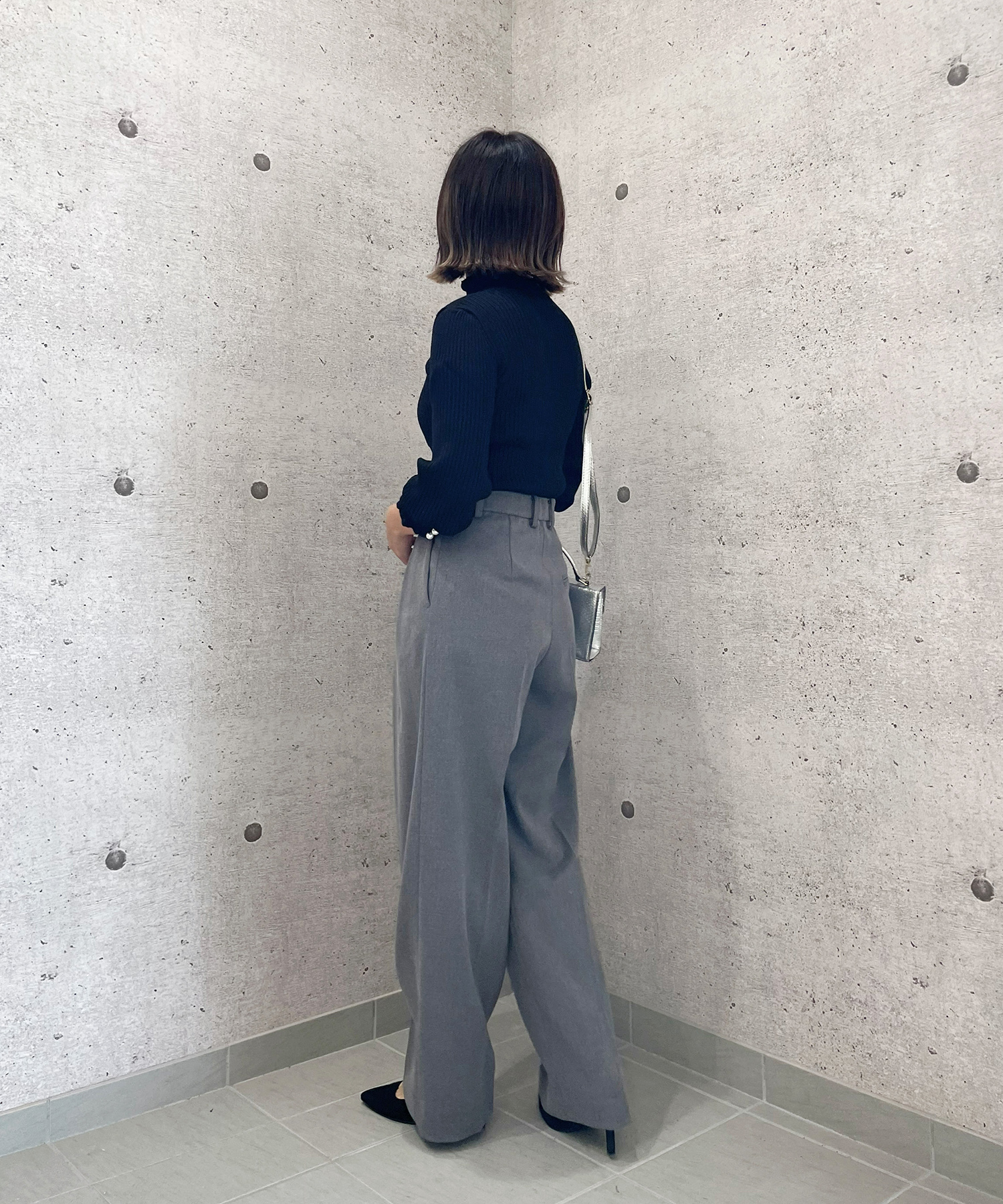 シンプルに見えて、袖口のさりげないパールが上品さをUPさせてくれるタートルニットには、ワイドパンツを合わせてトレンドスタイルにしてみました!