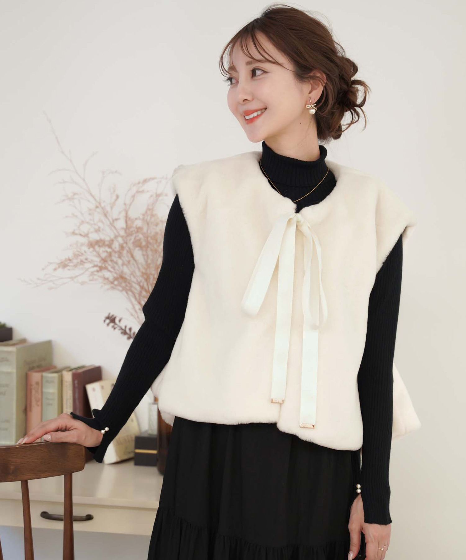 毛足が短く柔らかい質感が特徴のフェイクファーベスト。