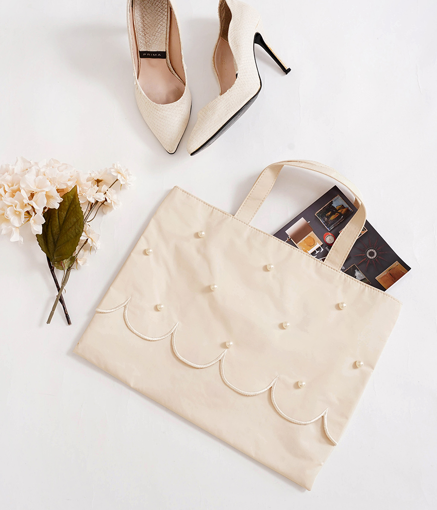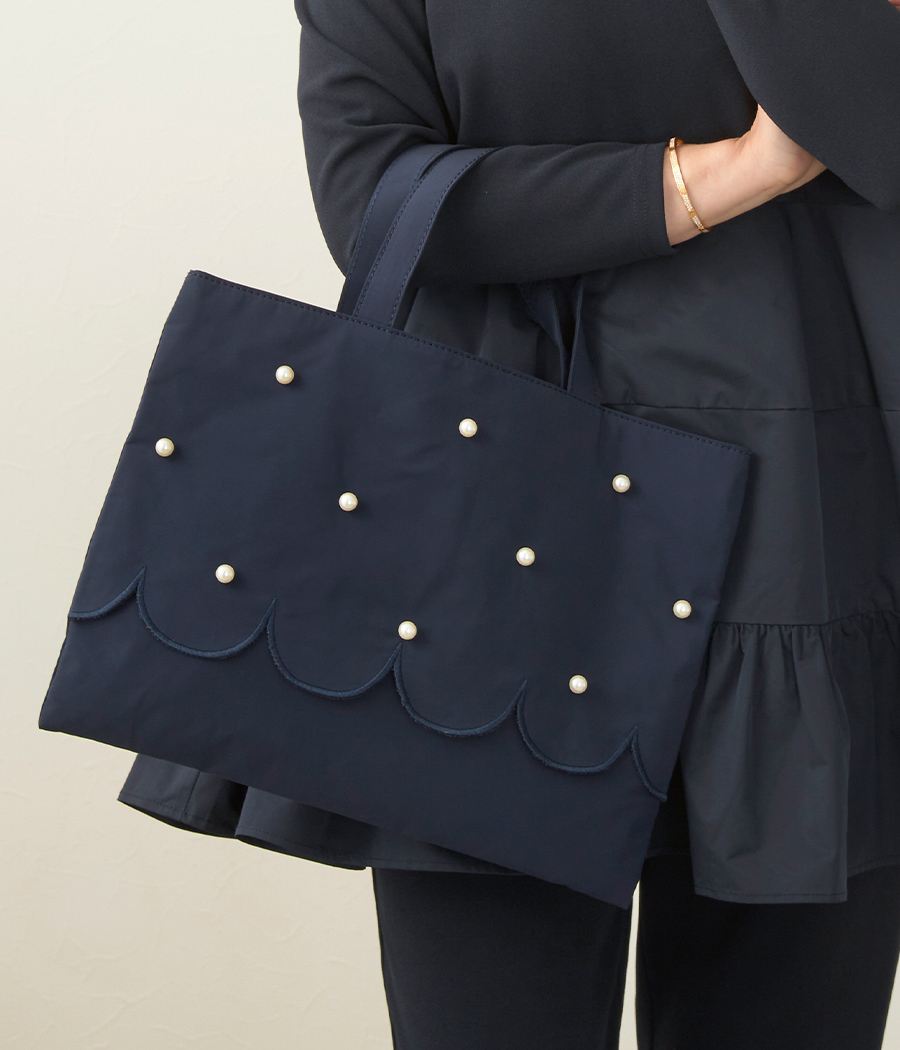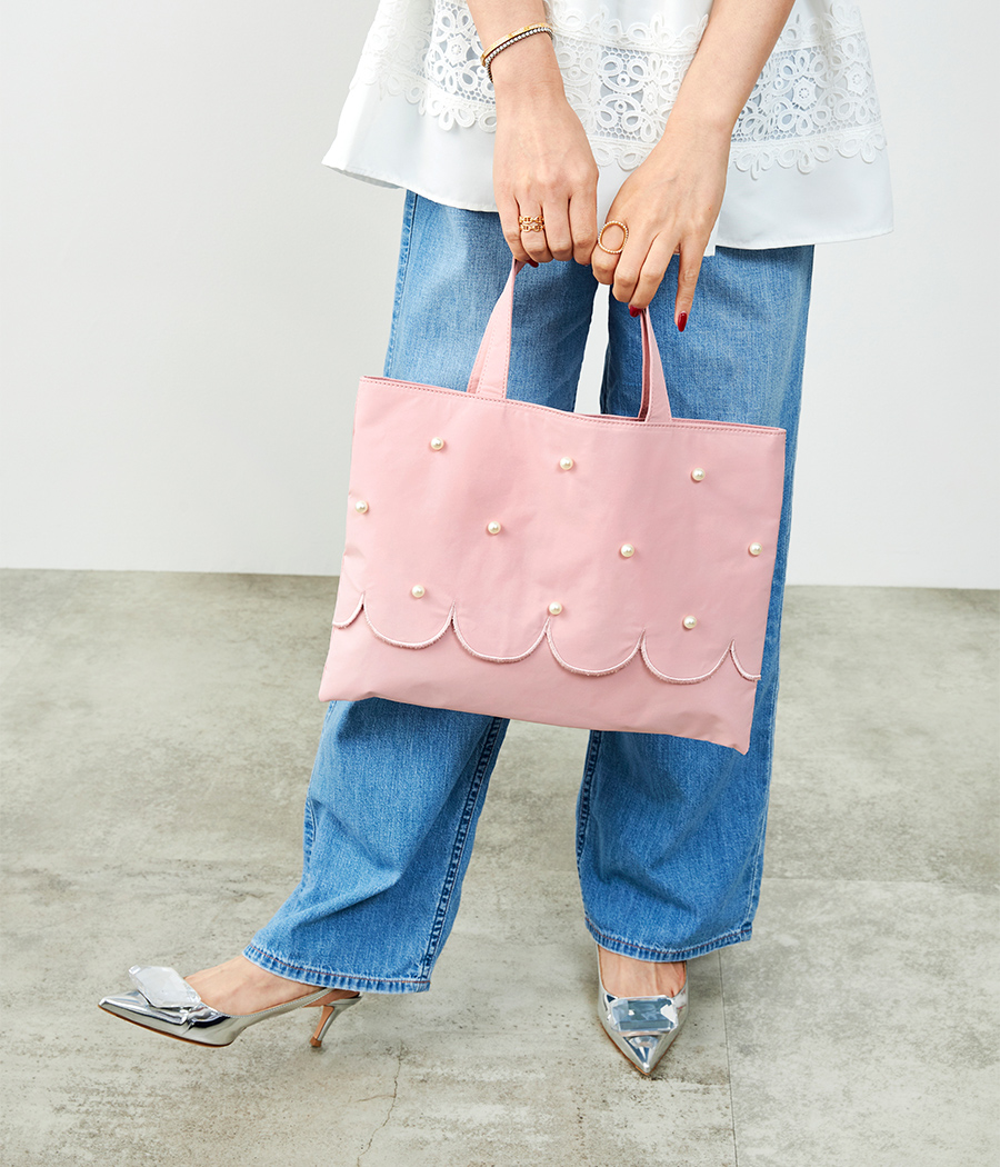 光沢感のある上品素材のパールバッグ。しっかりとした生地感で、フォーマルスタイルにも馴染むデザイン。撥水効果もあるので急な雨にも安心◎A4サイズもすっぽり収まるコンパクトなのに使いやすいサブバッグは、ママだけでなく、お子様の通学バッグやおけいこバッグとしても最適です!
