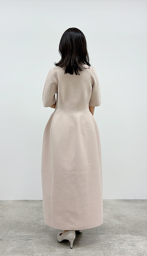 フィット&フレアのシルエットでスタイルアップした着こなしになります!しっかりとした素材感が程よく体にフィットしてくれるので細見え効果を感じました。