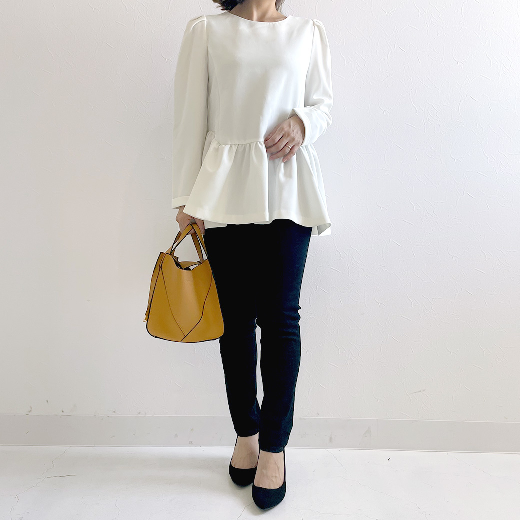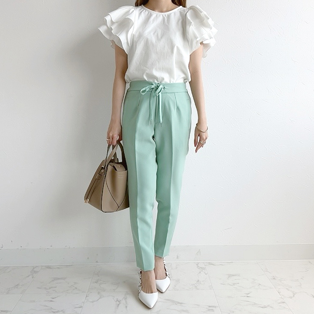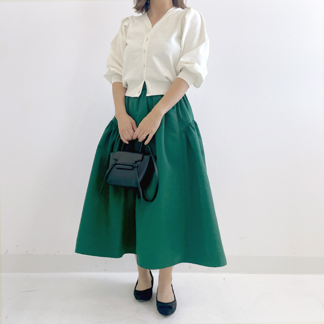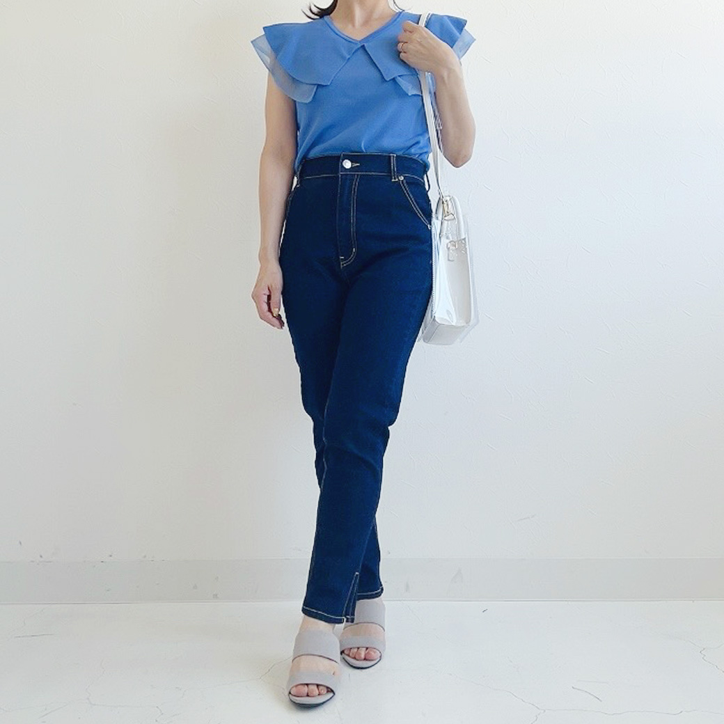 小柄さんはヒールを合わせるとバランスよく着られます。