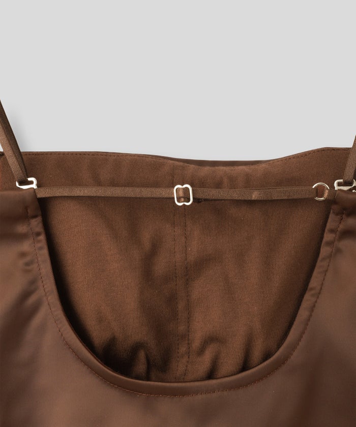 肩紐は取り外し可能、ベアトップとしての着用も。