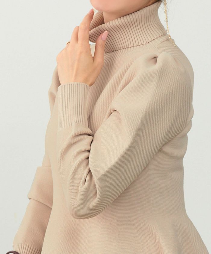 肩に寄せた編み機仕立てのギャザーはふんわり膨らみ女性らしさ◎