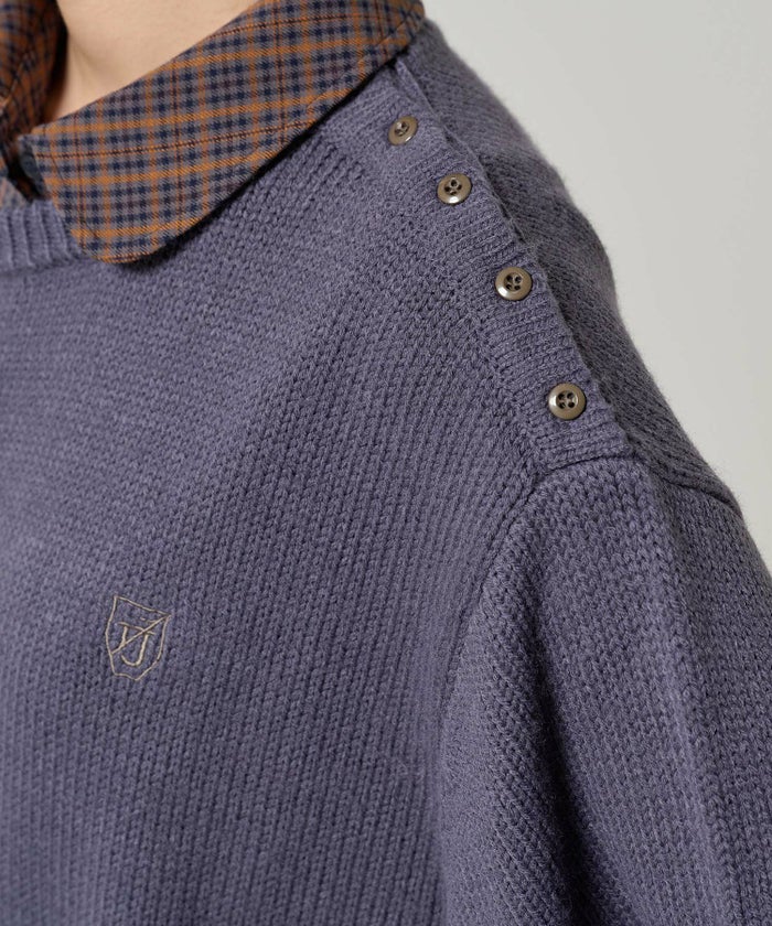 エンブレム付き ショルダーボタンニットプルオーバー