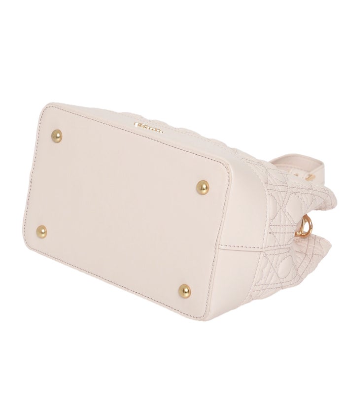 バックルデザインのハンドルがアクセントになり、甘さの中に程よいきちんと感をプラス