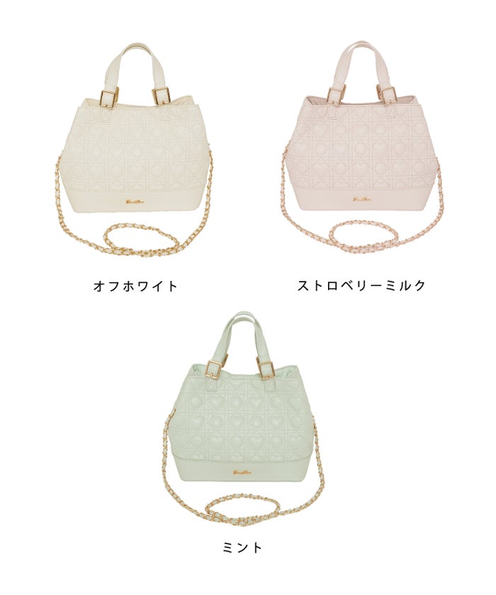 立体感のあるハートキルティングが目を惹く、大人可愛いデザインバッグです