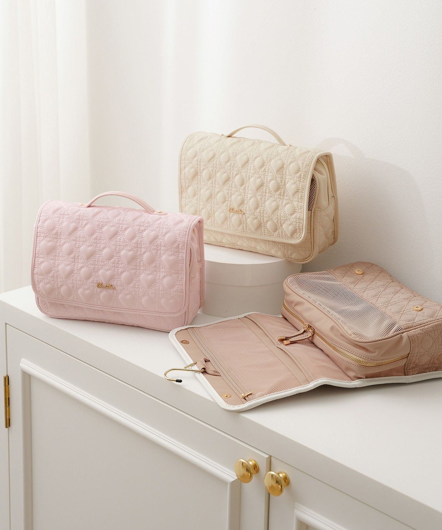 軽やかな合皮素材とさりげないハート柄キルティングでどこへ持って行っても気分が上がる♡