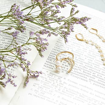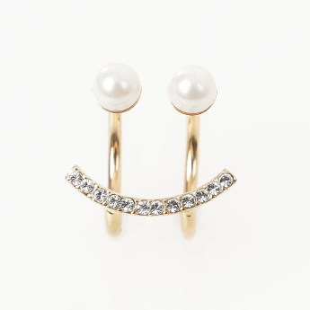 パールとクリスタルをあわせ横から見るとスマイルのように見えるリングです。