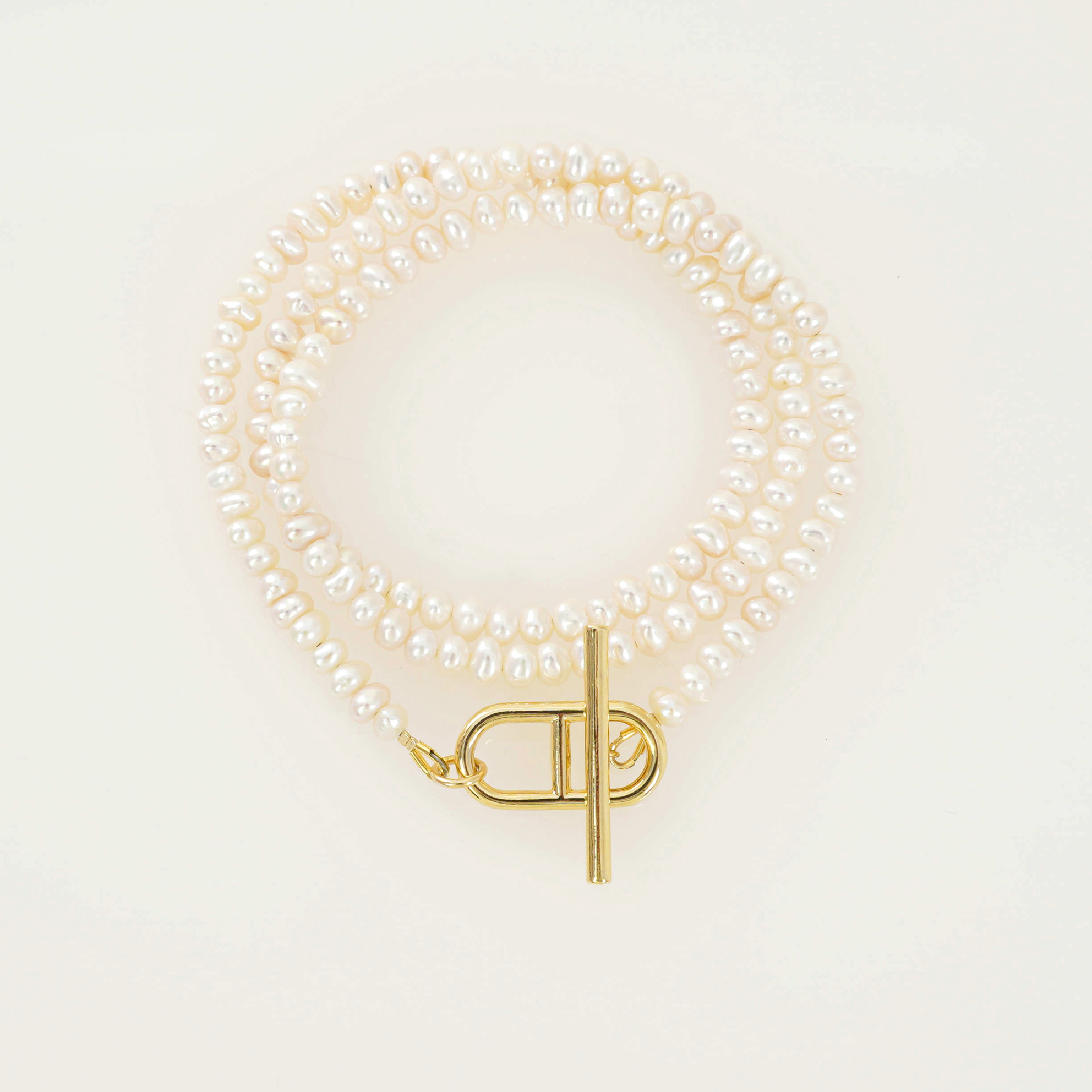 小粒の淡水パールの三連ブレスレット。