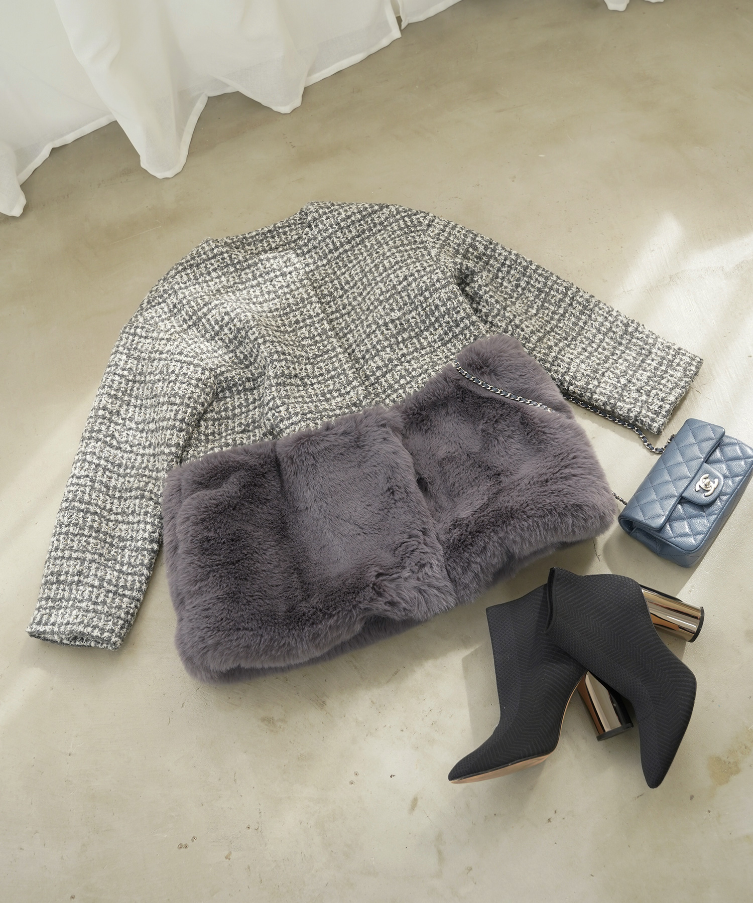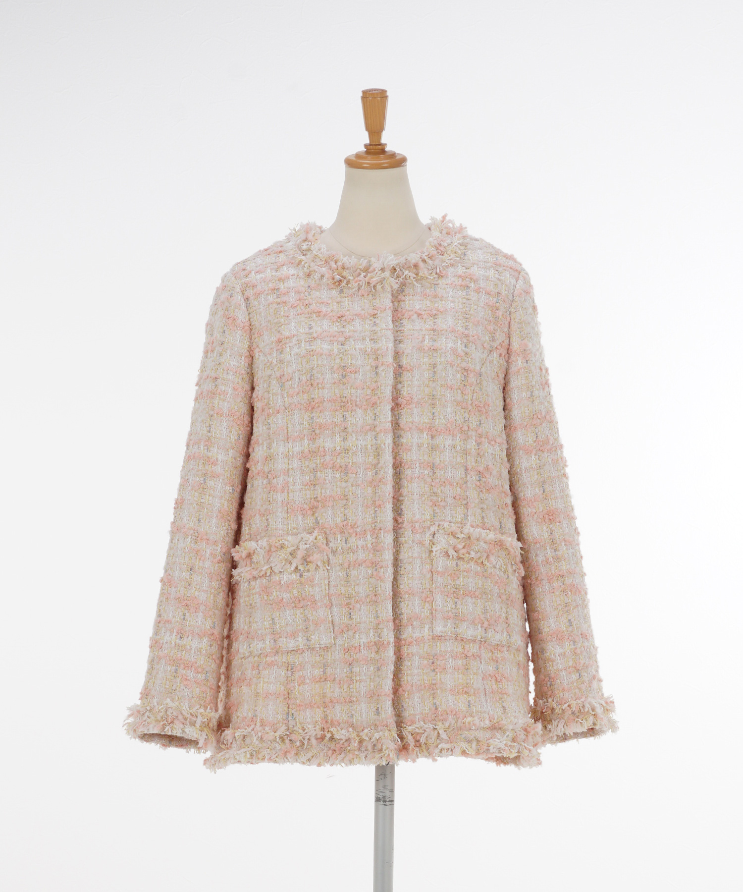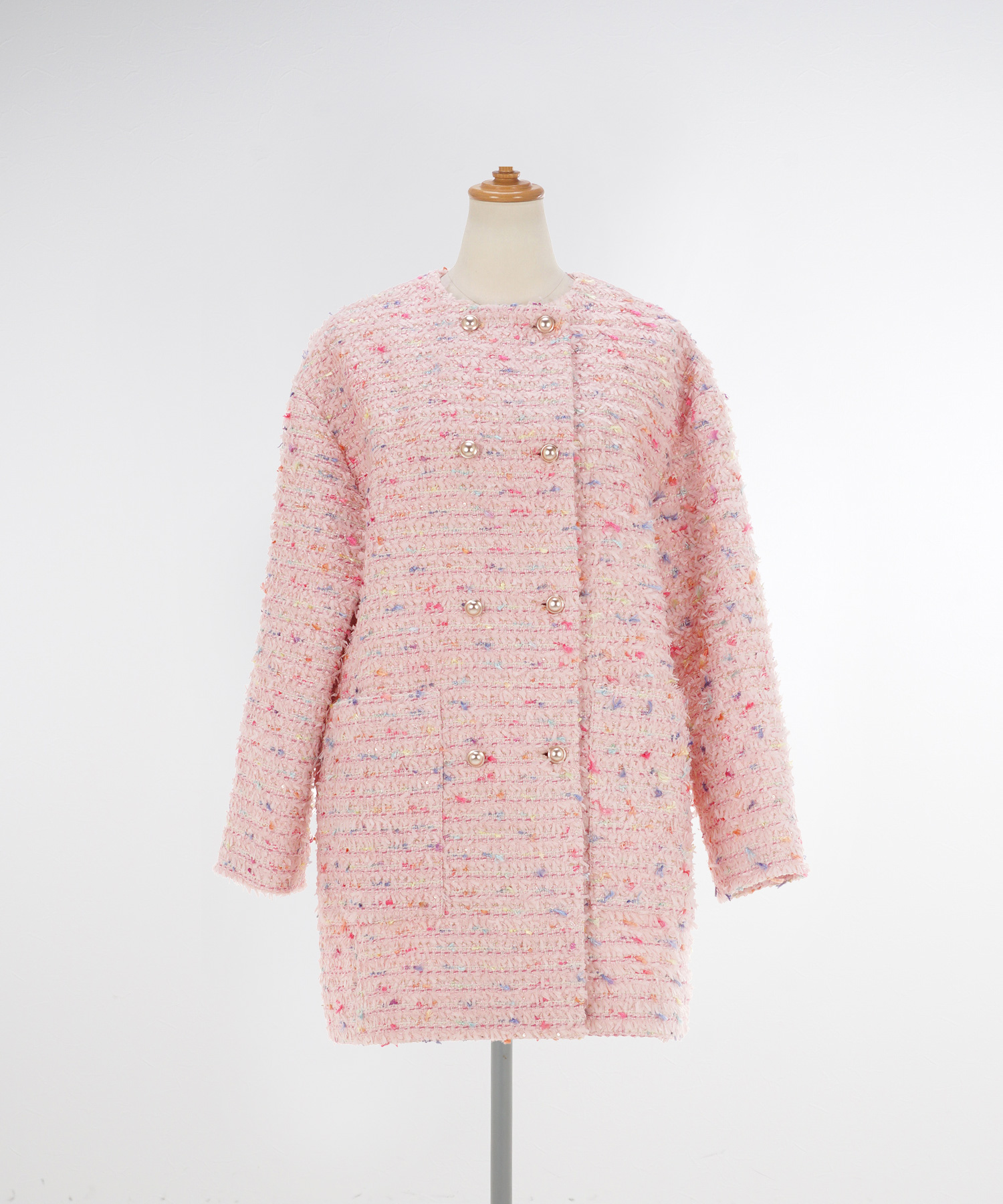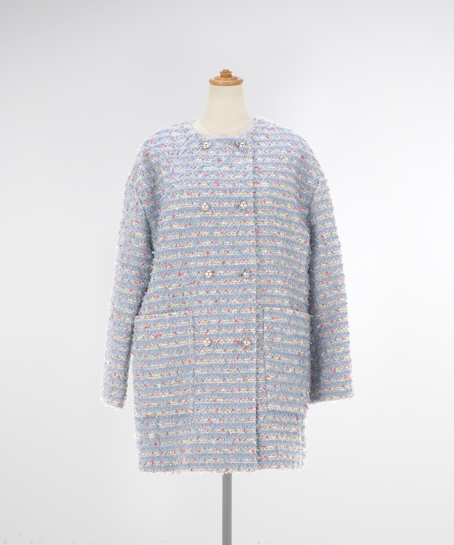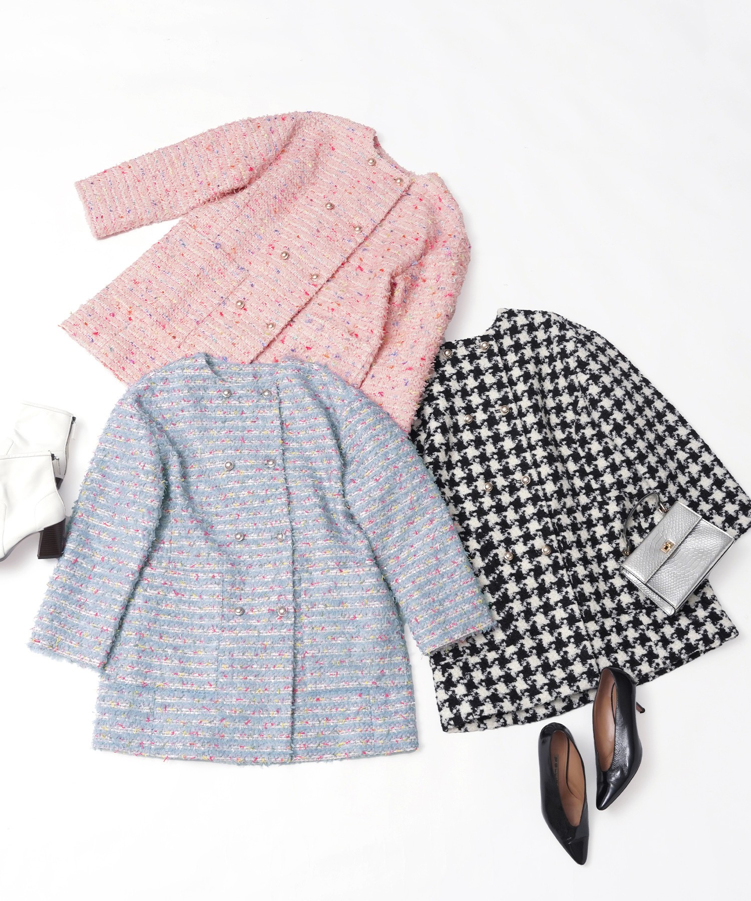 ミドル丈の贅沢コートはとっても華やかなツイード素材。