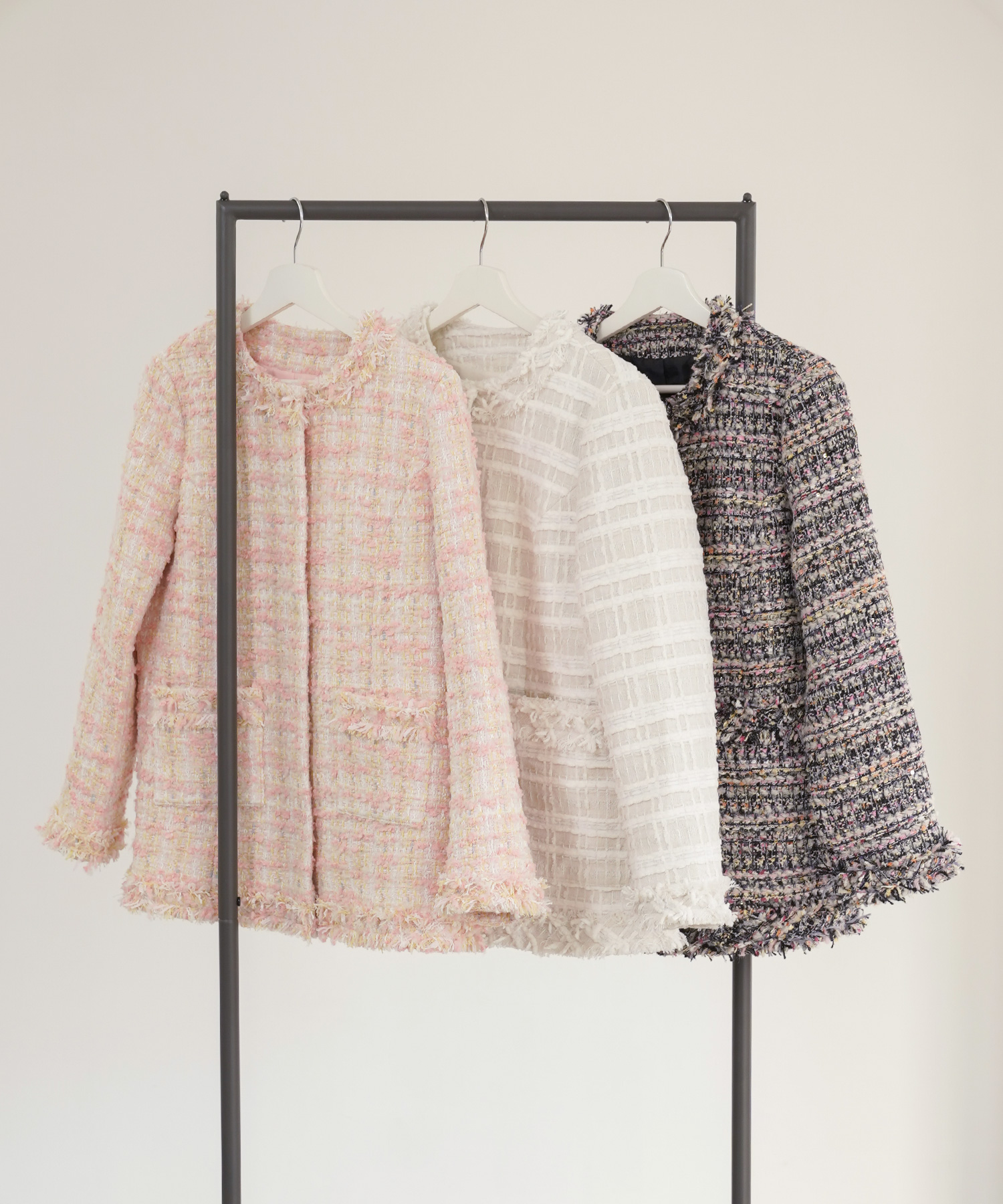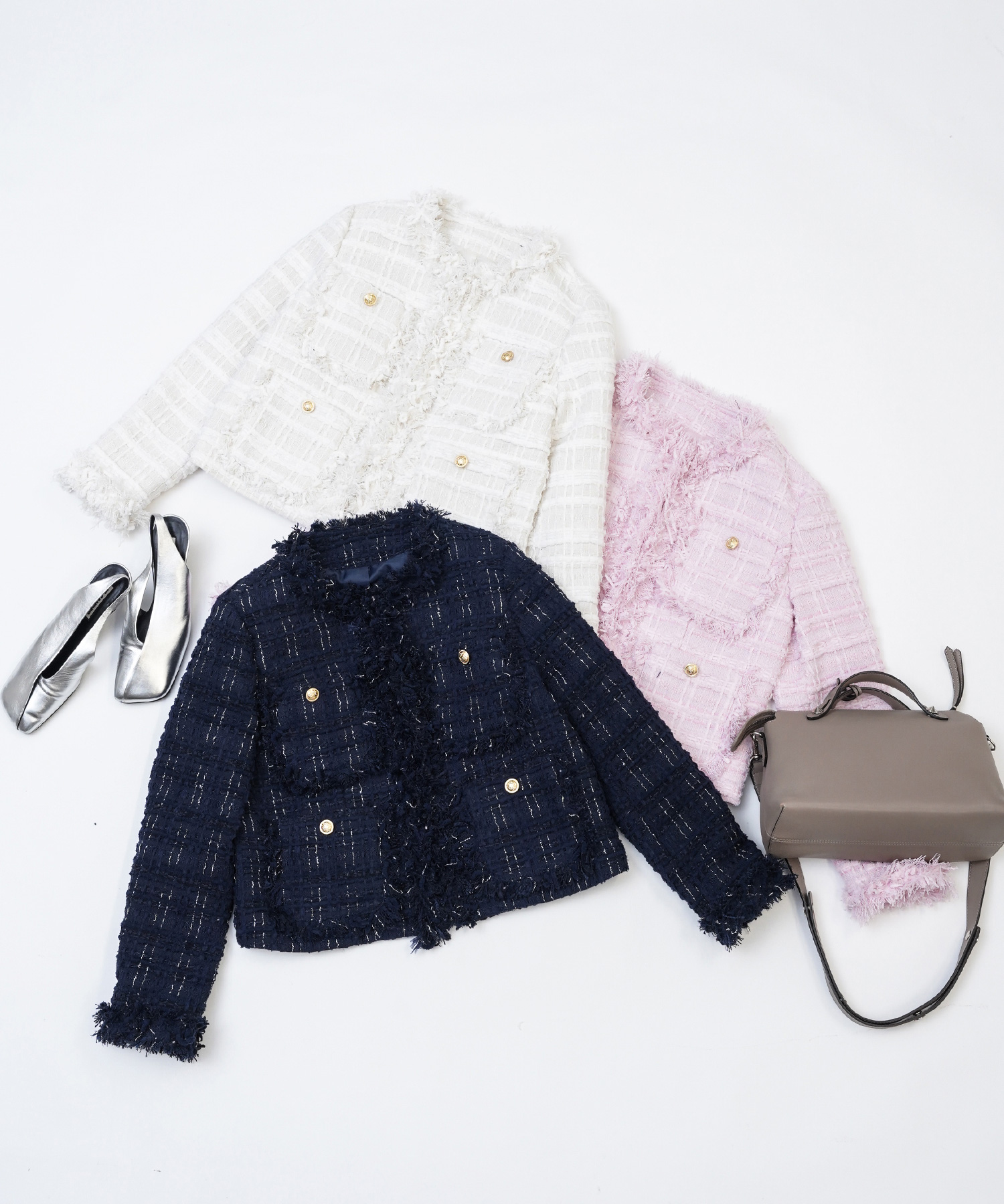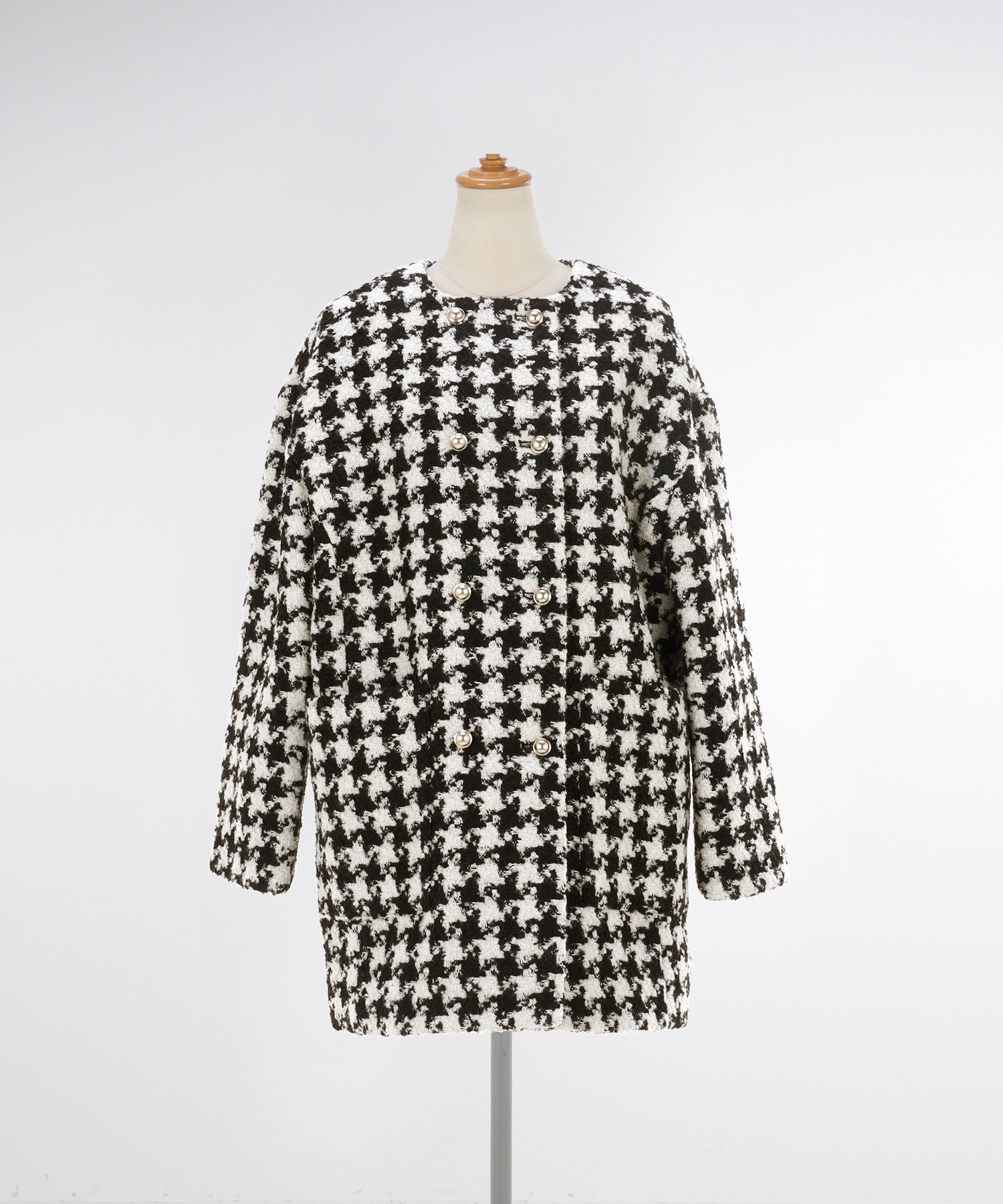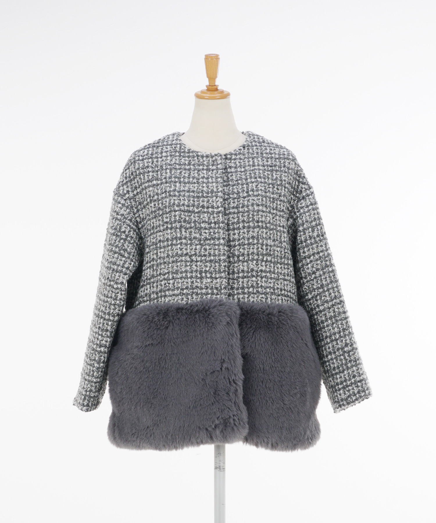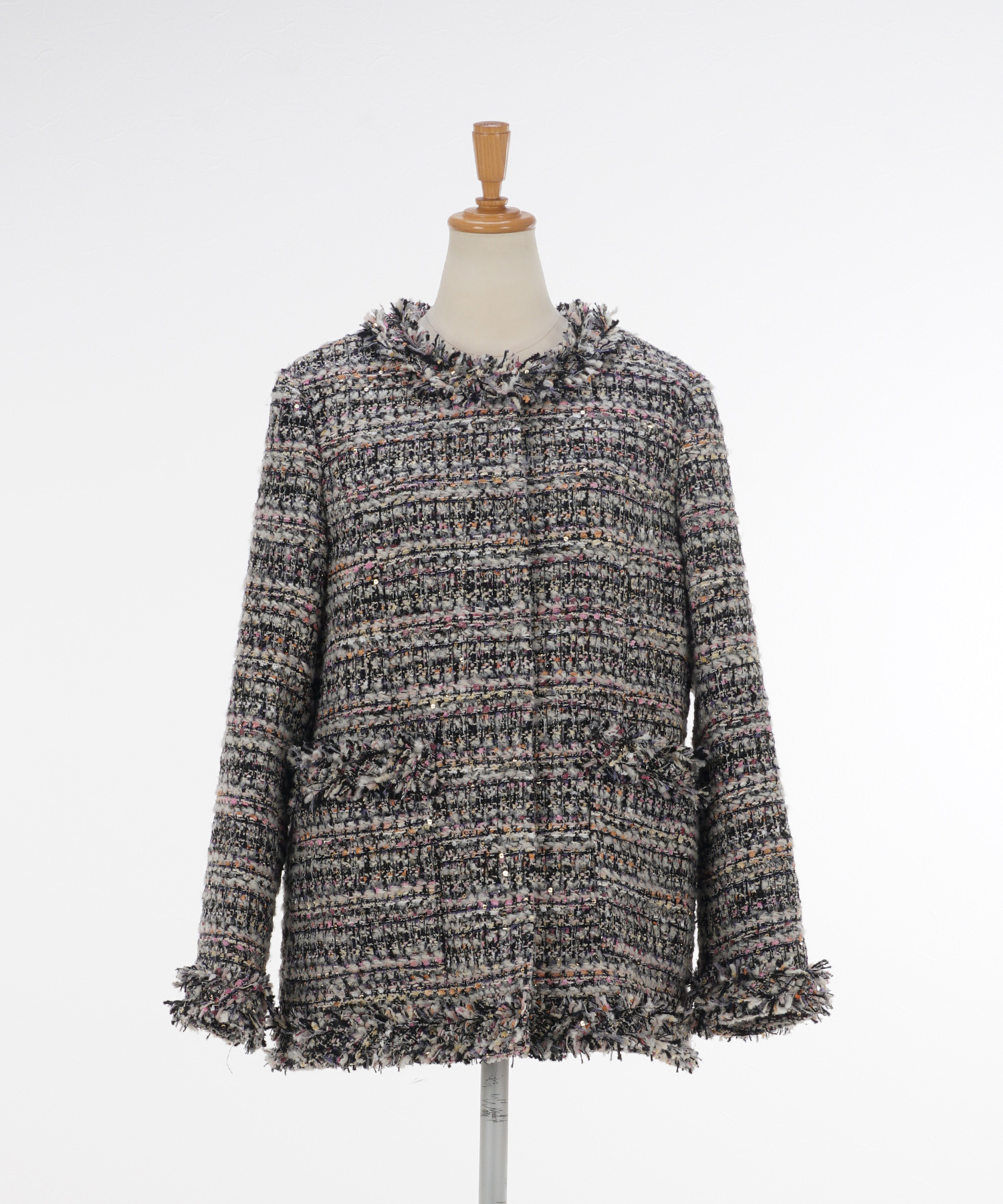 ミドル丈の贅沢コートはとっても華やかなツイード素材。