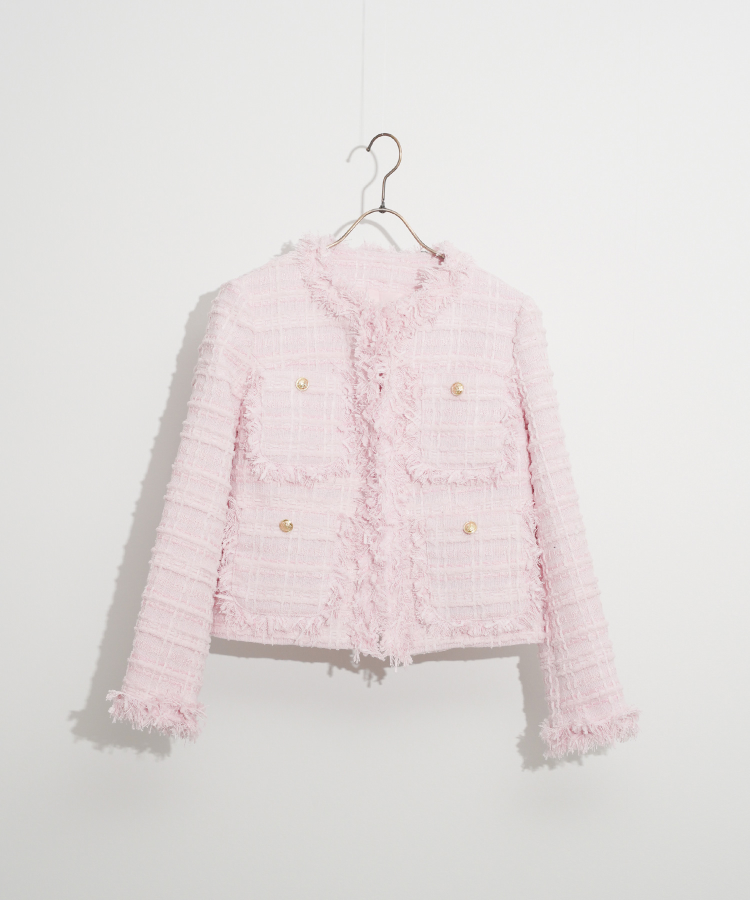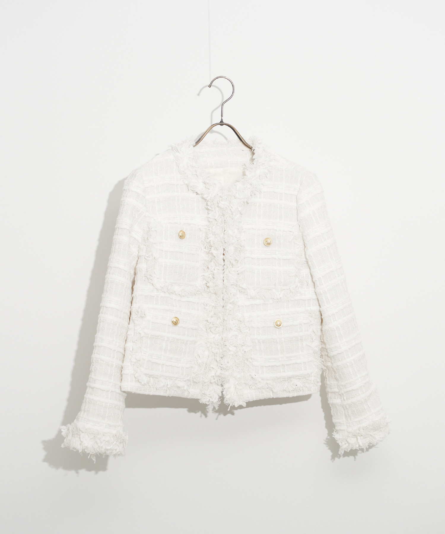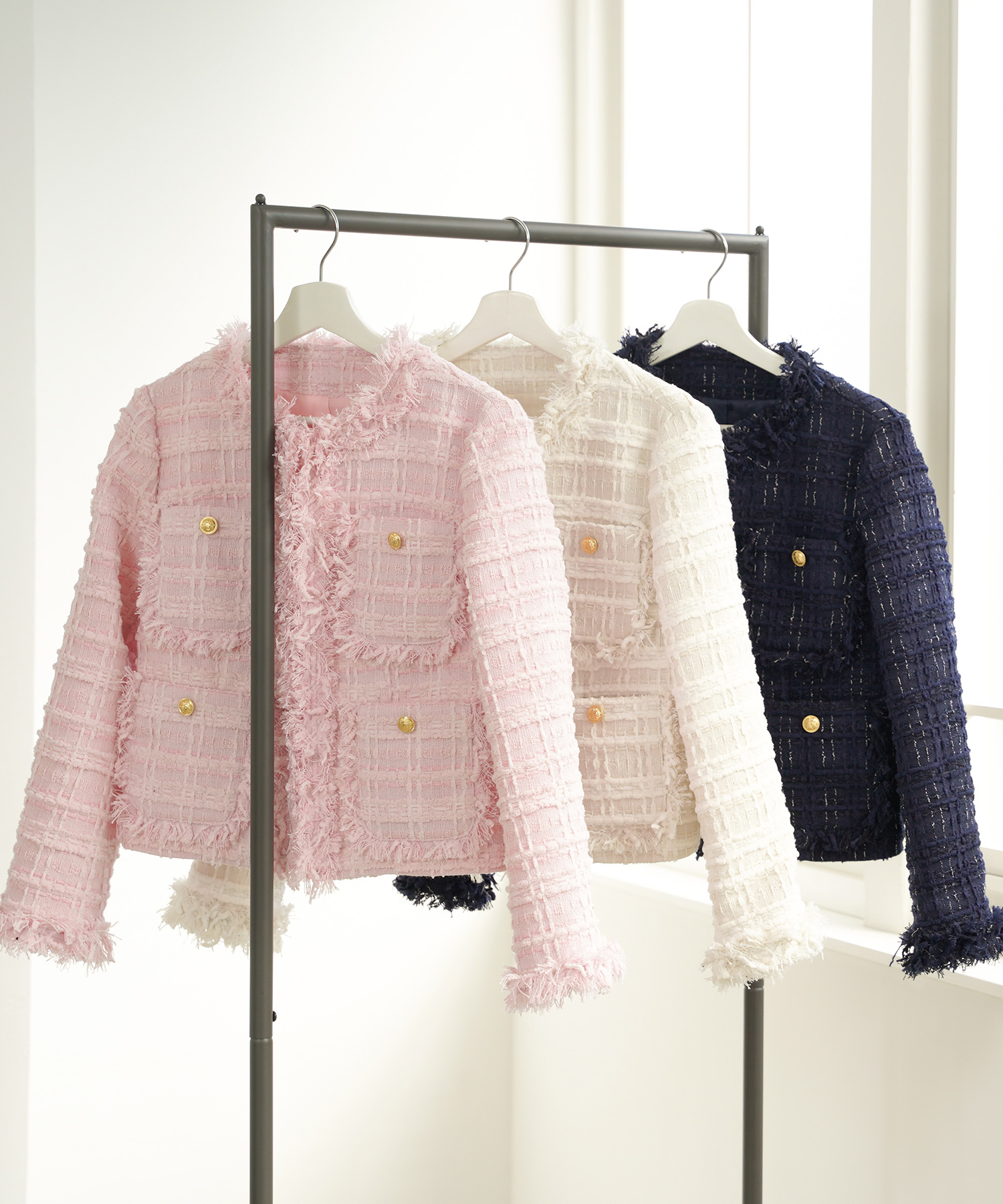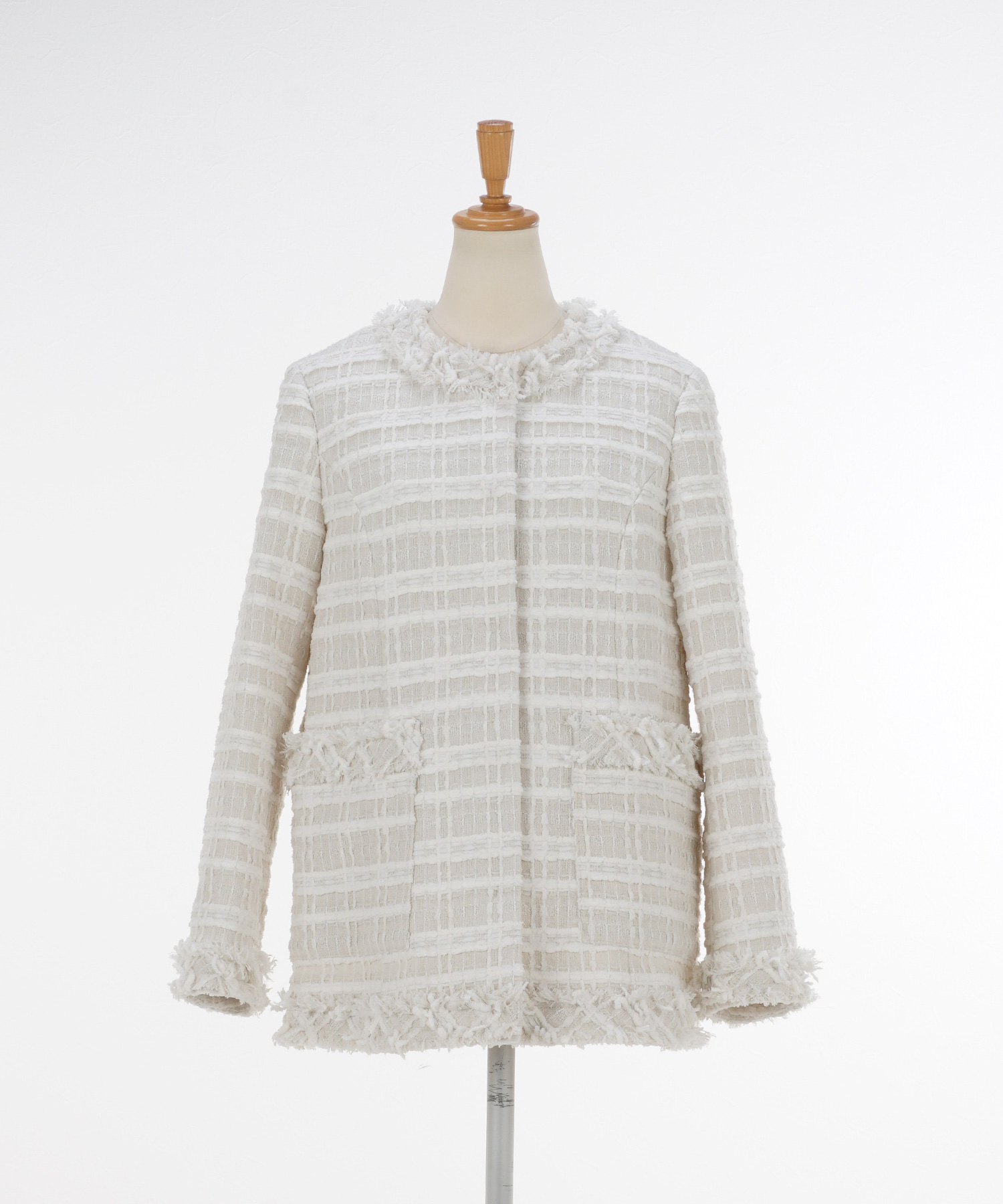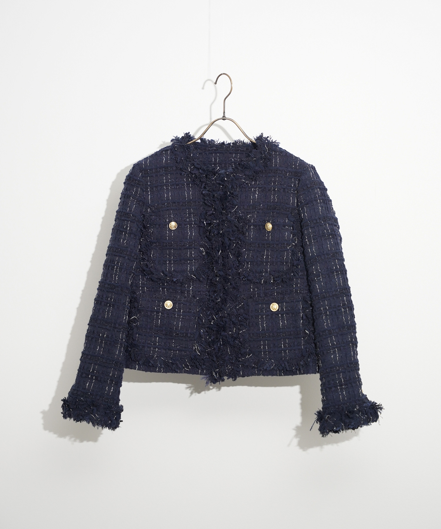 ミドル丈の贅沢コートはとっても華やかなツイード素材。