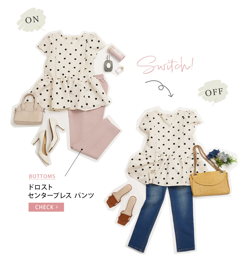 ペプラムデザインが可愛いのできちんとし過ぎず程よい抜け感に。