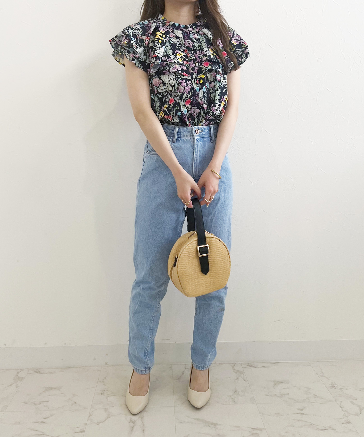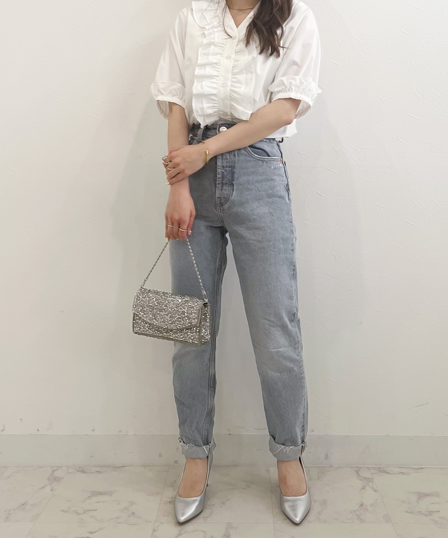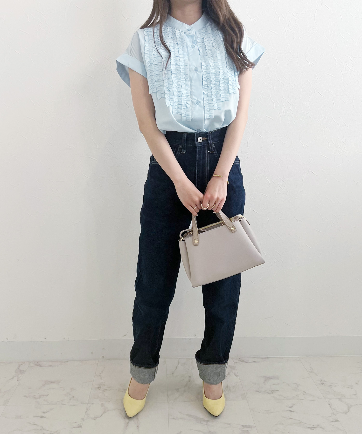 襟付きデザインのデニム合わせはコーデのバランスが◎