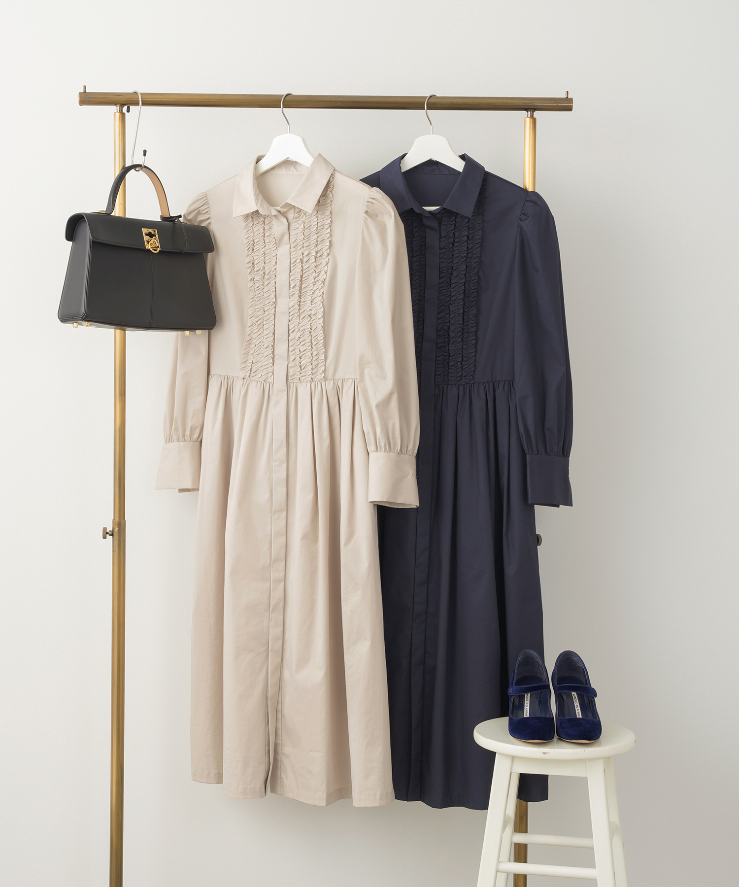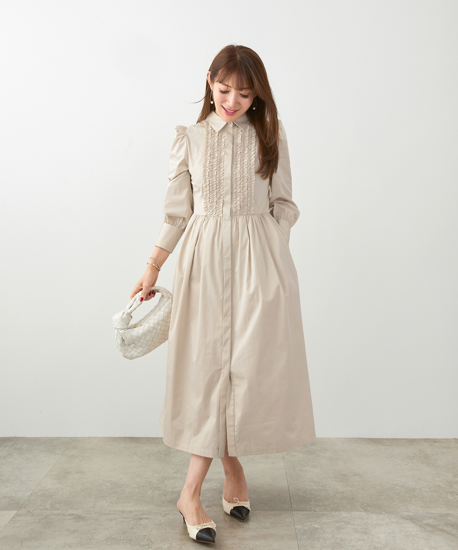 上品ながらも女性らしい可愛さをメイクするフロントフリルワンピース。