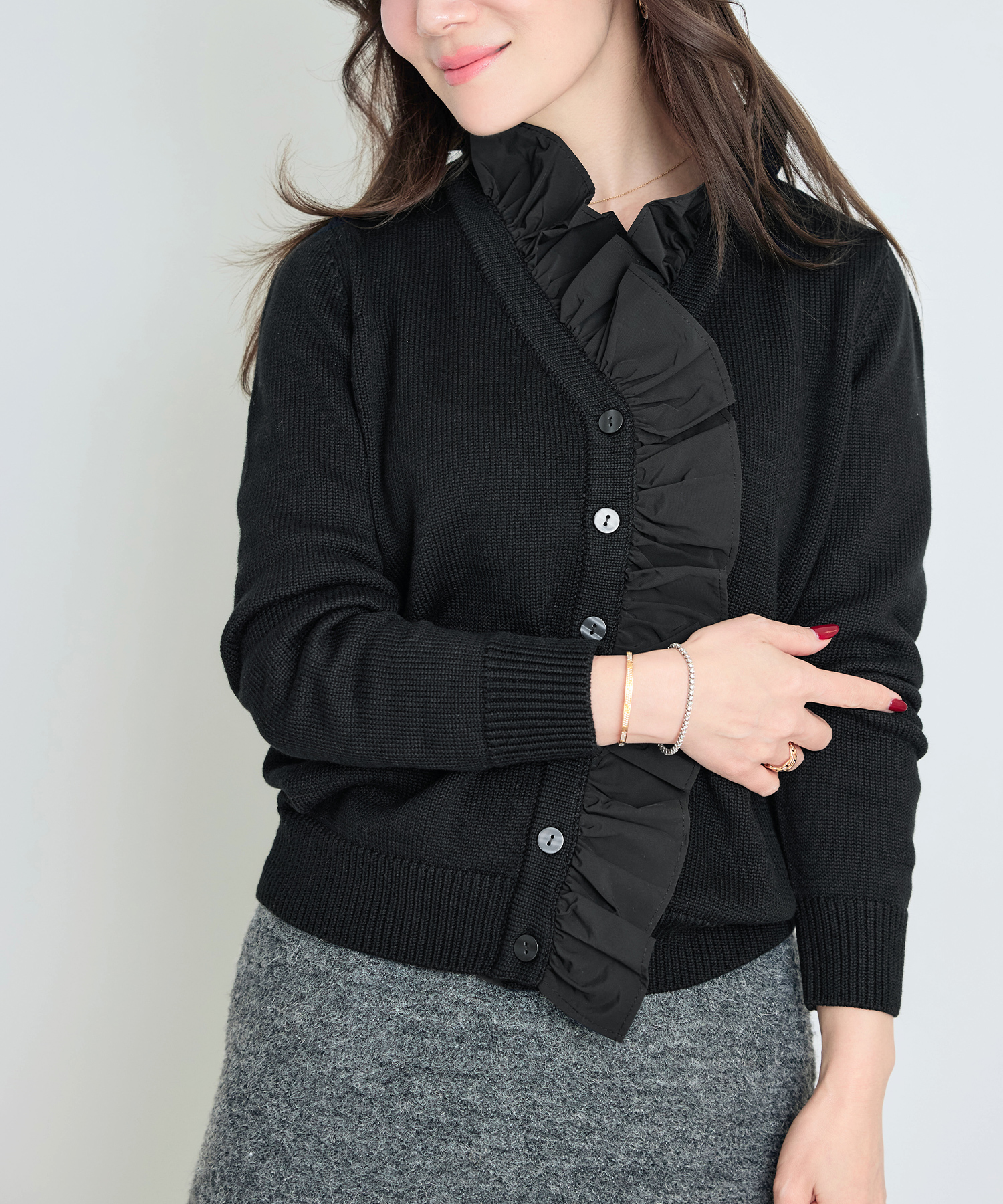 フリルのディテールがフェミニンなアクセントを添え、立体的なシルエットも演出。