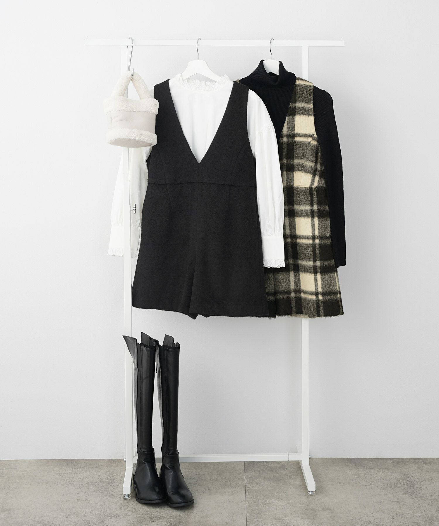 セットアップはもちろん、ボトムスを変えるだけで
