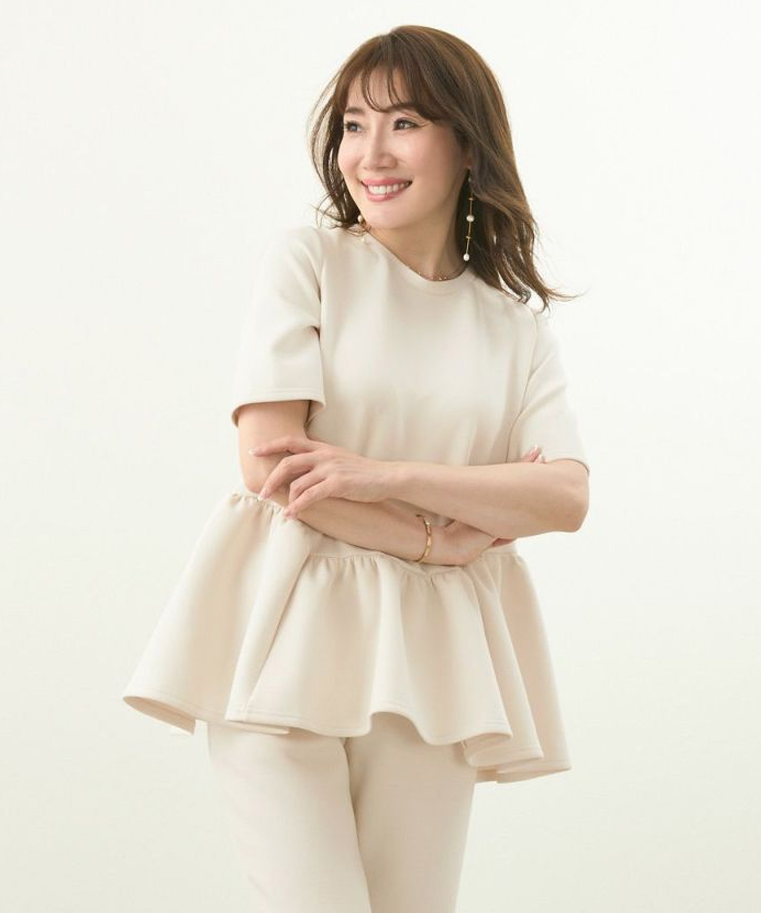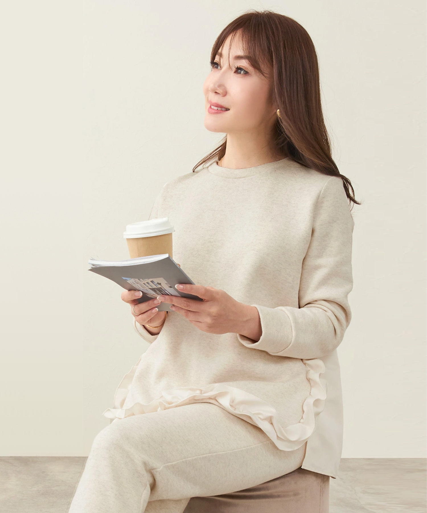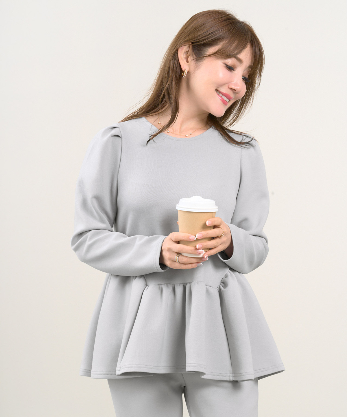 同素材のパンツとセットアップならこなれ感も◎