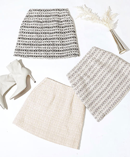ワンカラーでも凸凹やフリンジ付き素材は高級感◎