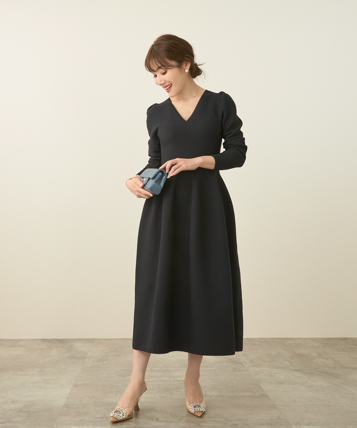 デコルテを綺麗に魅せてくれるVネックもPointです。