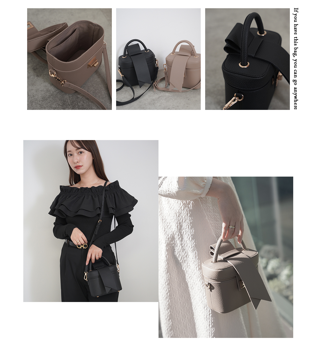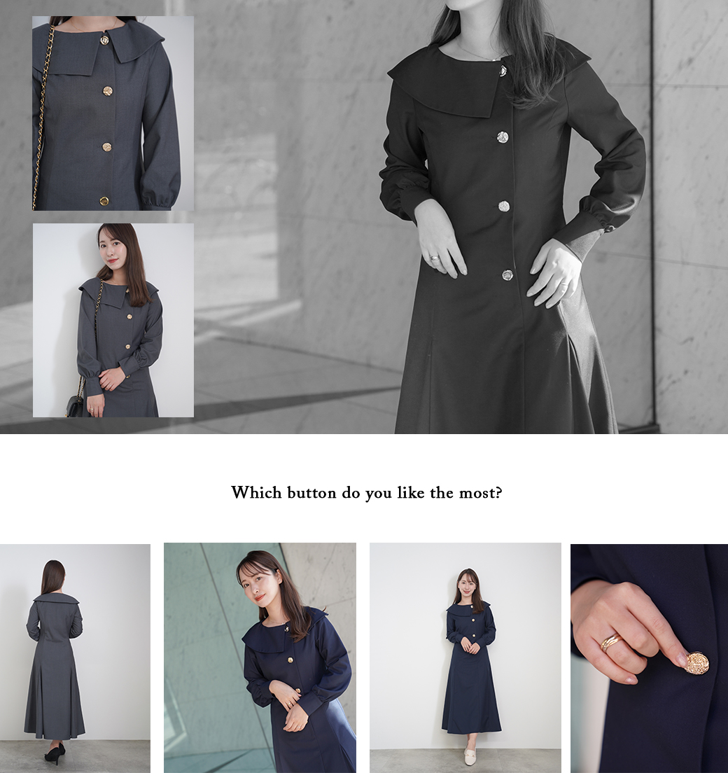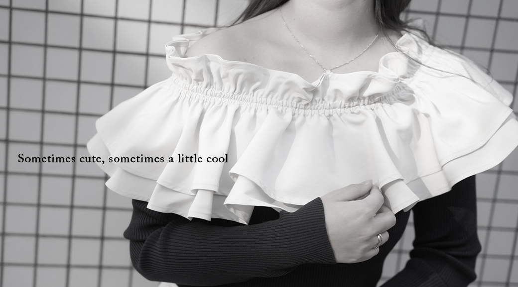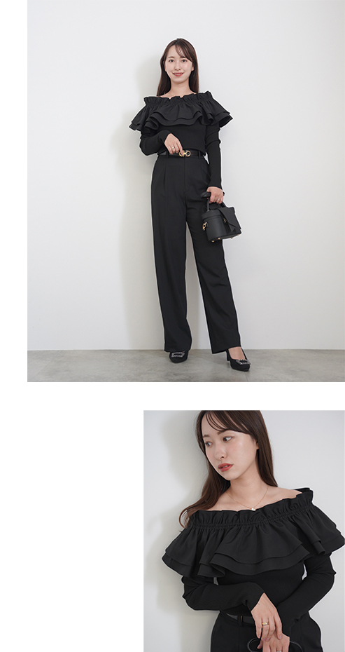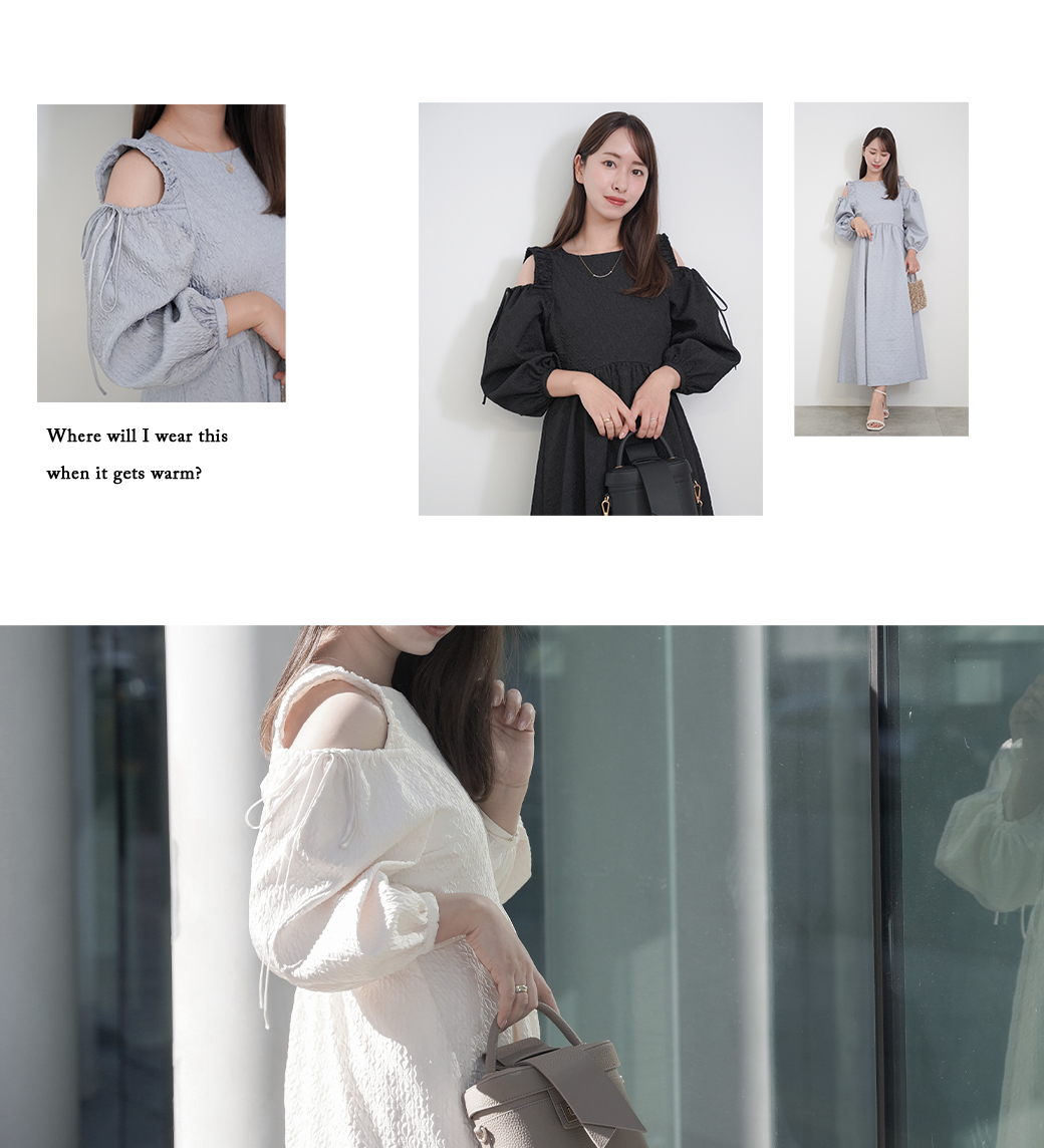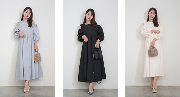 Cut shoulder jacquard dress ▶ look Vanity mini shoulder bag ▶ look Double ruffle off shoulder knit tops ▶ look Assorted button shirt dress ▶ look