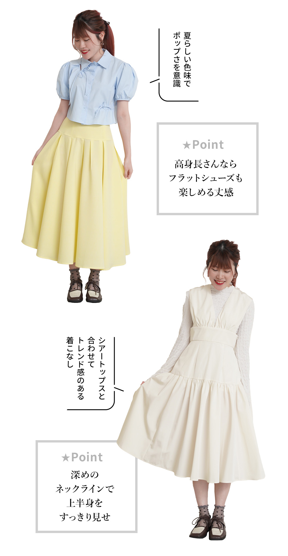 lieulienのアイテムを スタッフがリアルコーディネート 身長別スタイル別、着こなしの 参考にしていただけると嬉しいです♪ Coordinate Items ギャザー ティアードロング ワンピース リネンライク 切替タック スカート ≪ Joint Space TOP