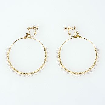 ゴールドとパールをミックスしたバイカラーのフープピアスです。
