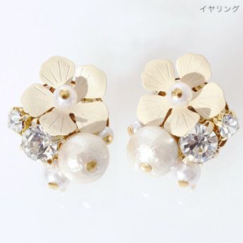 これからの季節におすすめの可愛いお花のパールピアスイヤリングです。