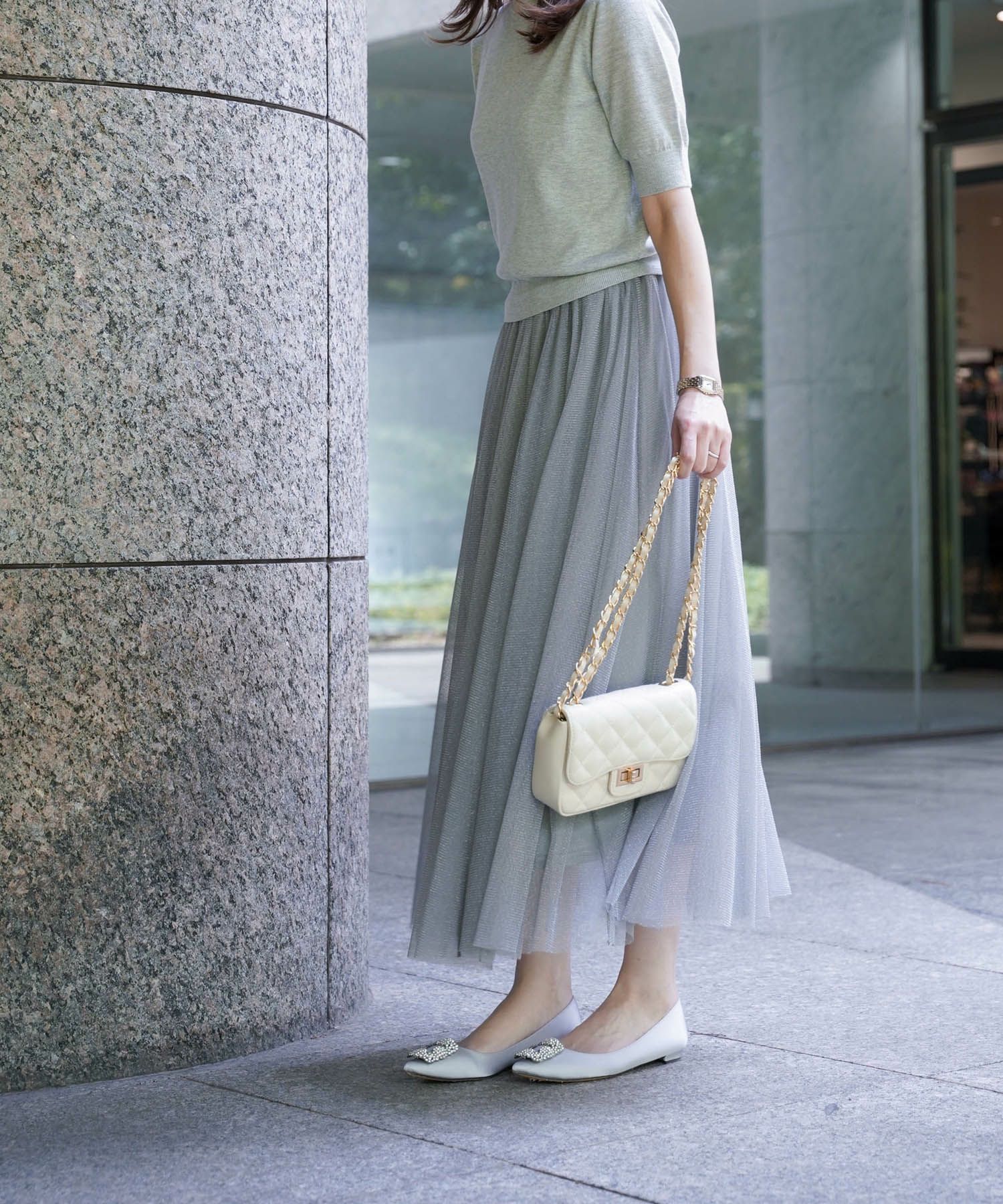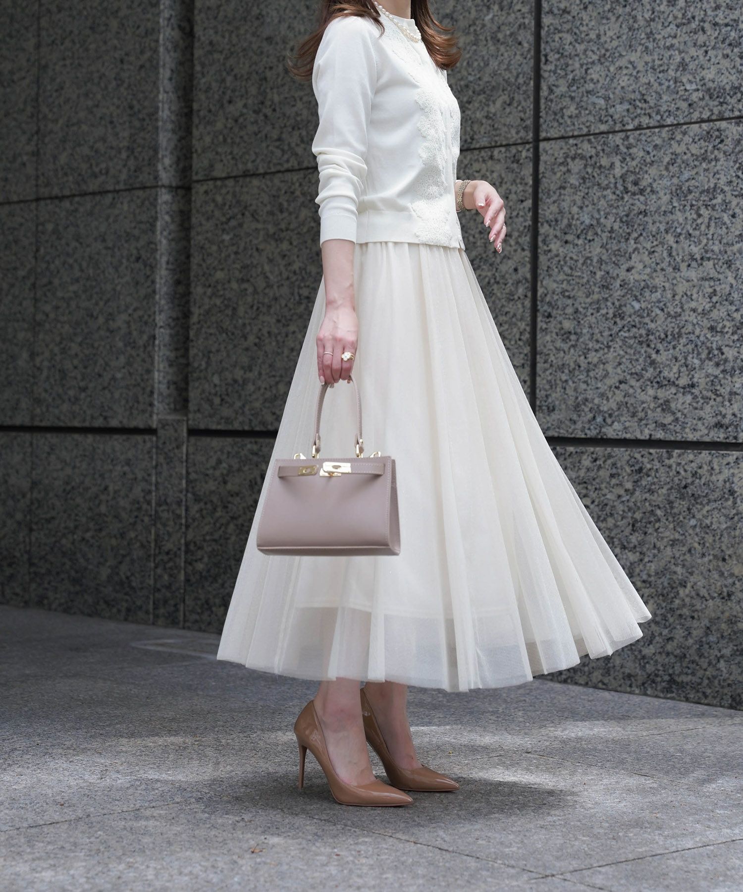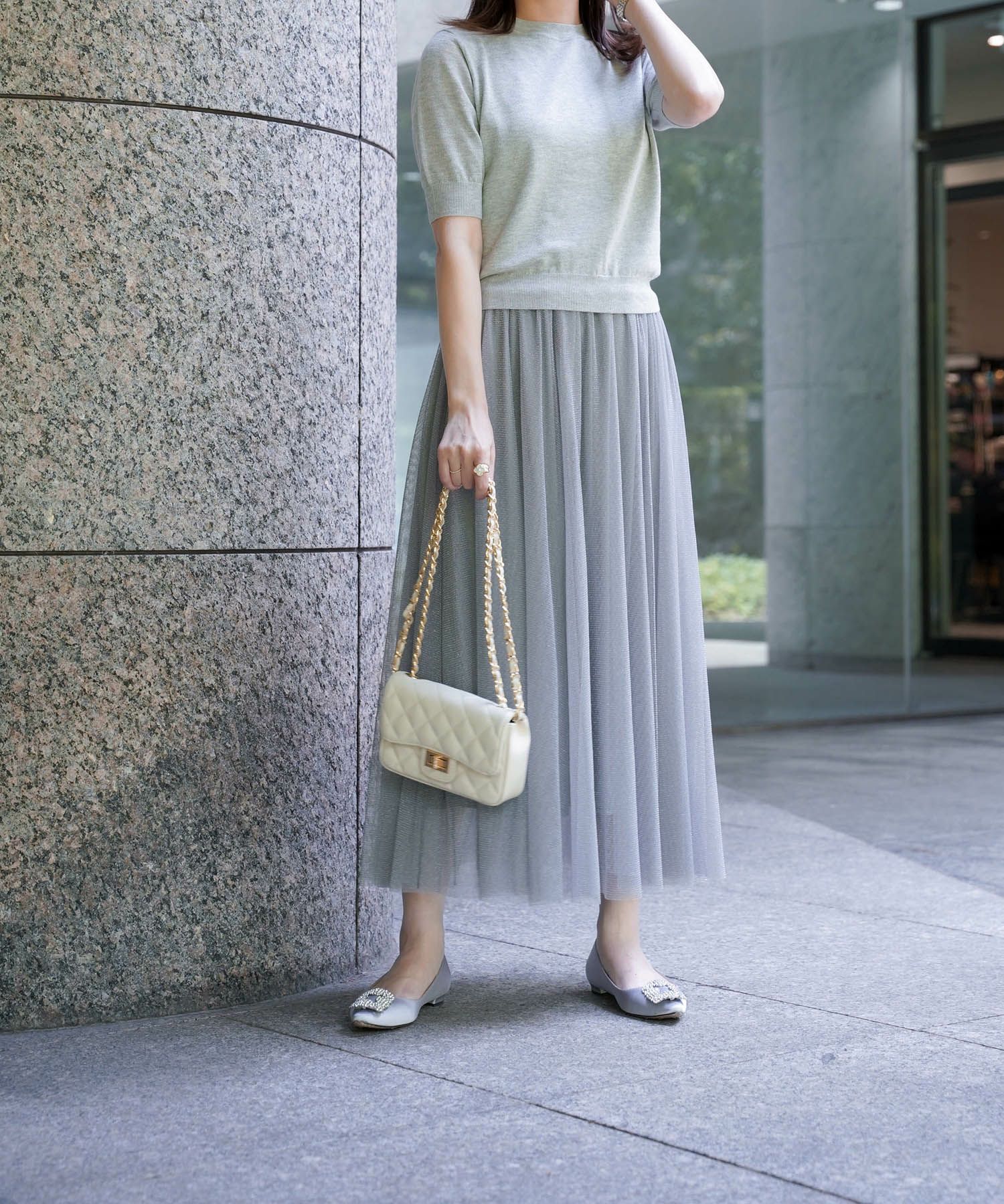 絶妙なフレアラインは、甘すぎず大人らしいフェミニンさを叶えてくれます。
