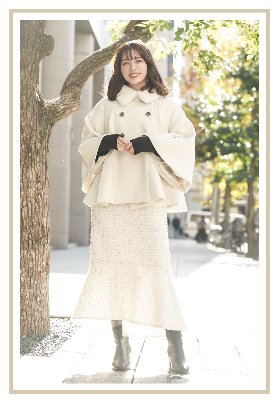 Collaboration with annette Onepiece: Side Belt Flare Dress BUY Onepiece: Square Neck Voliminous Sleeve Onepiece BUY Tops: Wholegarment Wool 100% Turtleneck Knit BUY Skirt: Scalloped Check Flared Skirt BUY Outer: Fur Collar Short Cape Coat BUY Tops: Cachecoeur Lame Knit Tops BUY Skirt: Nep Tweed Mermaid Skirt BUY Tops: Wholegarment Wool 100% Turtleneck Knit BUY Onepiece: Bustie Style Mix Material Pleats Dress BUY PROFILE annette@__nbls__ 身長:155cm ブライダルモデルを中心にフリーランスでモデル活動をされているアネットさん。屈託ない笑顔がとってもキュート♡ Instagramの私服投稿は、カジュアルからキレイ目まで幅広く、こなれ感たっぷりな着こなしが魅力的です。 ≪ タイアップ一覧 ≪ Joint Space TOP