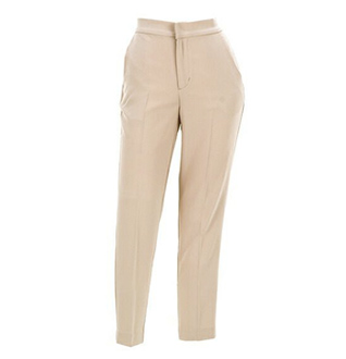 高めの位置のウエスト切り替え・前上がりの裾がスタイルアップ効果があるので、フラットシューズやスニーカーでもバランスが取りやすいです。