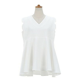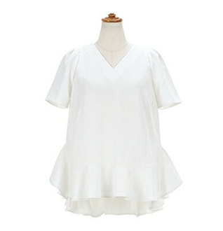 胸下高い位置からの切り替え、オシャレ度が増す前後アシンメトリーな着丈、胸元Vネックで顔まわりスッキリ。