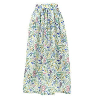彩り鮮やかな花柄スカートには、シンプルにTシャツ・スニーカーを合わせてカジュアルダウン。