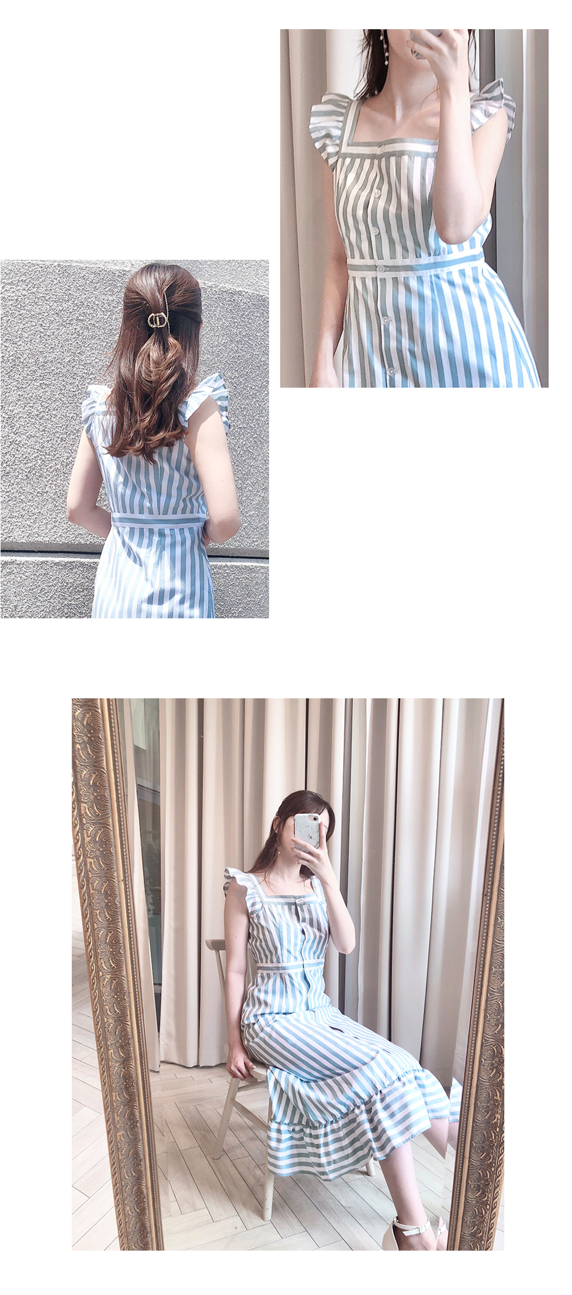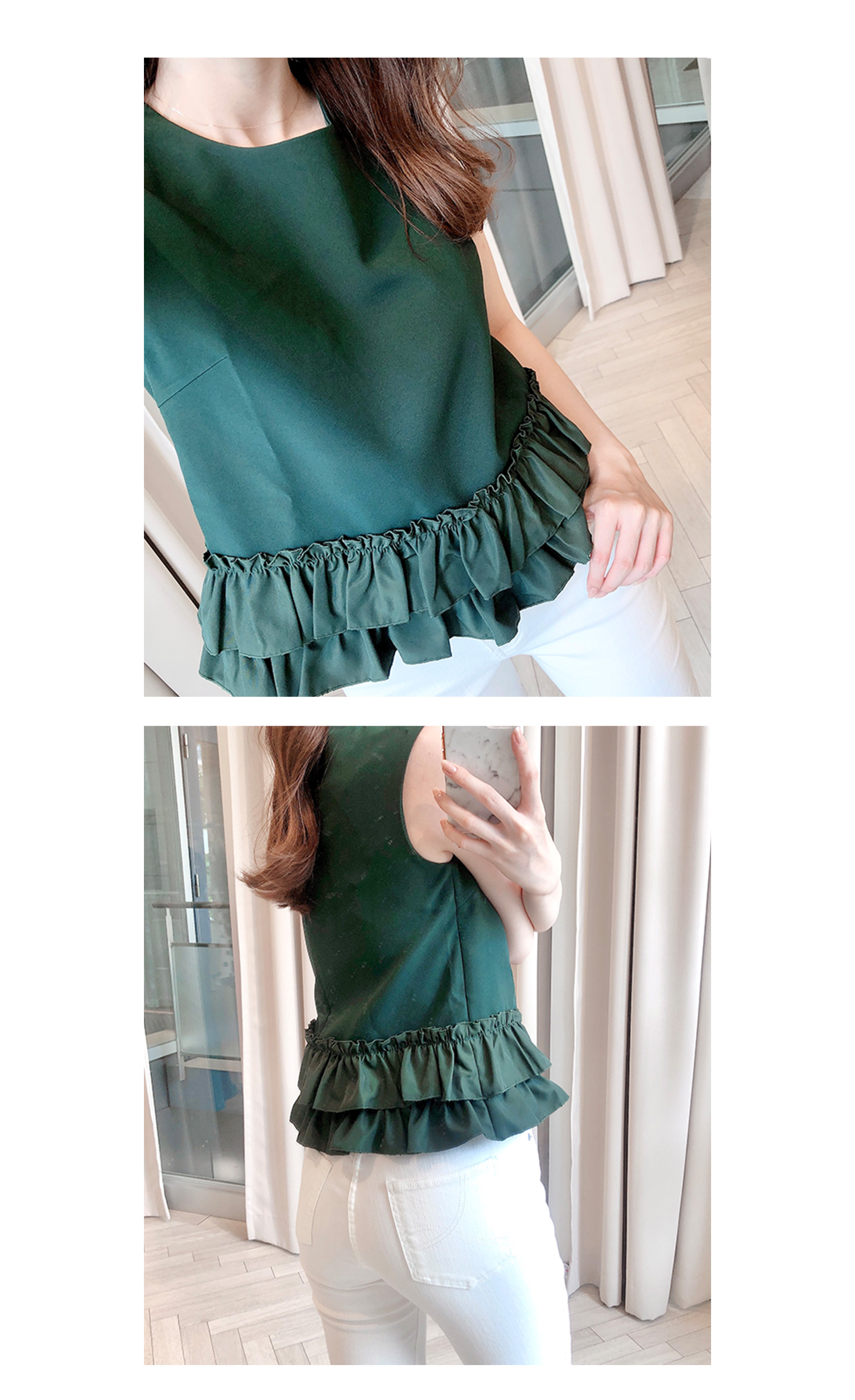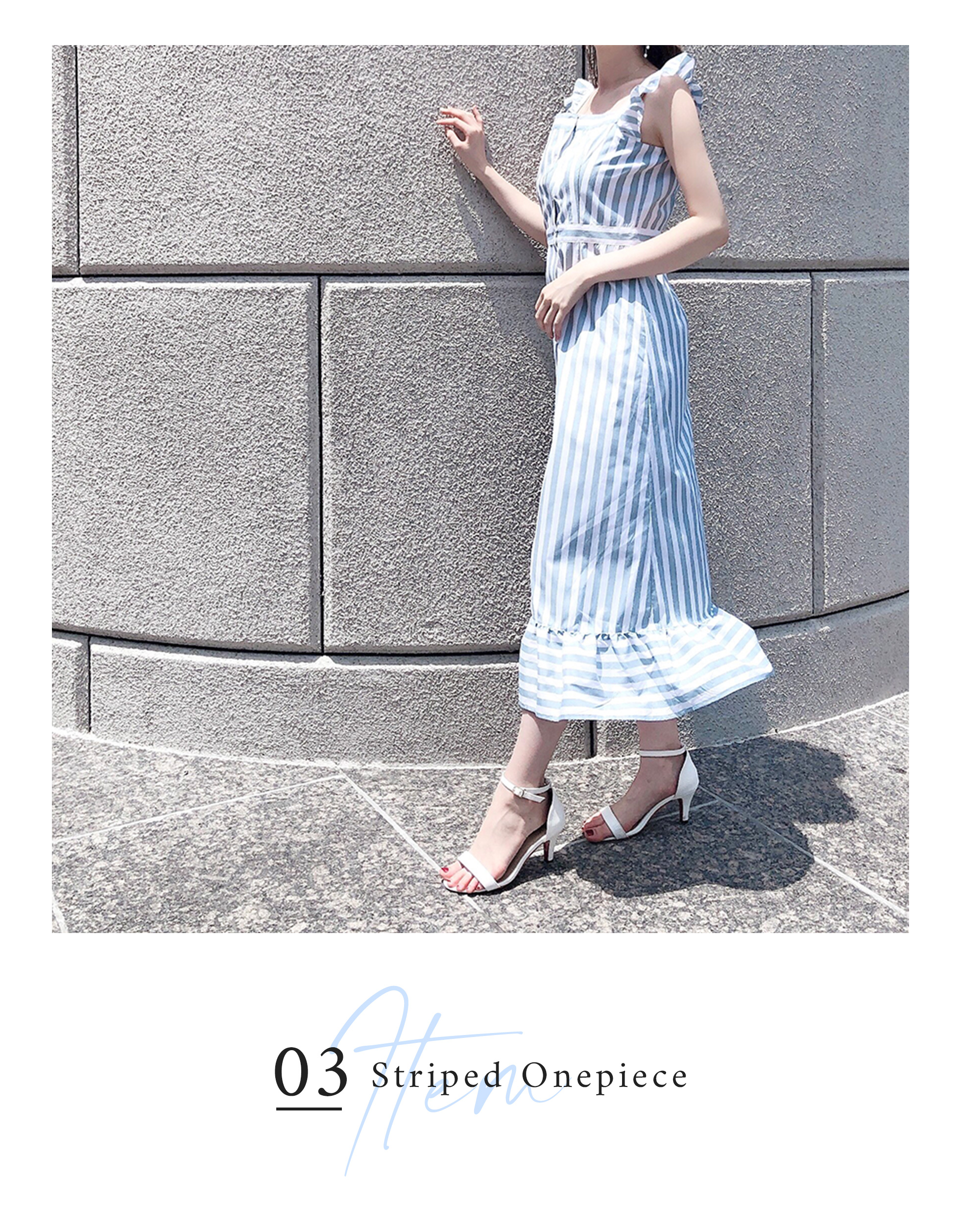 フリルになったトップスもグレーを選び、ネイビーと合わせることで甘さ控えめの大人コーデになります♡