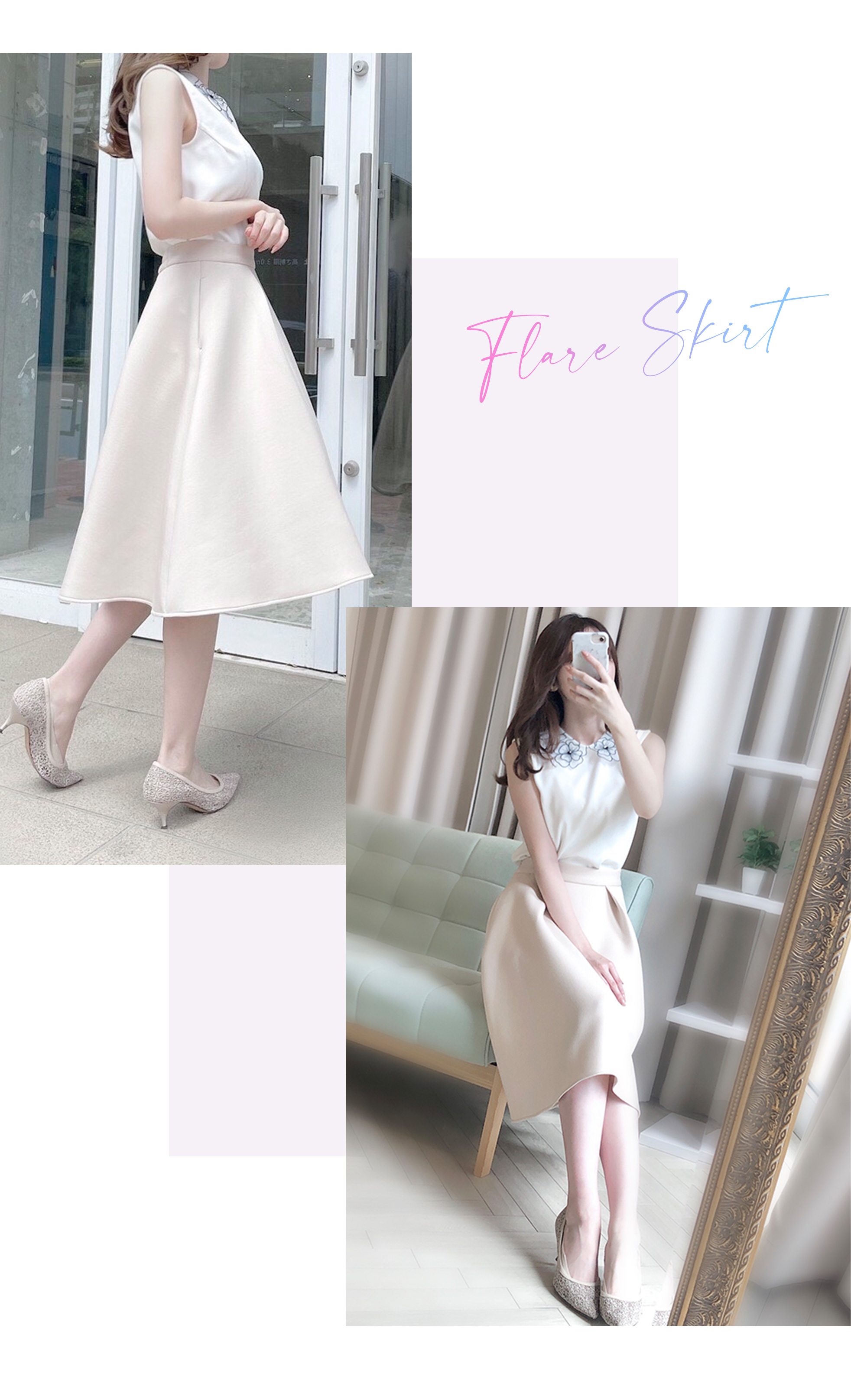 肉厚な生地で形に動きがしっかり出るフレアスカート。