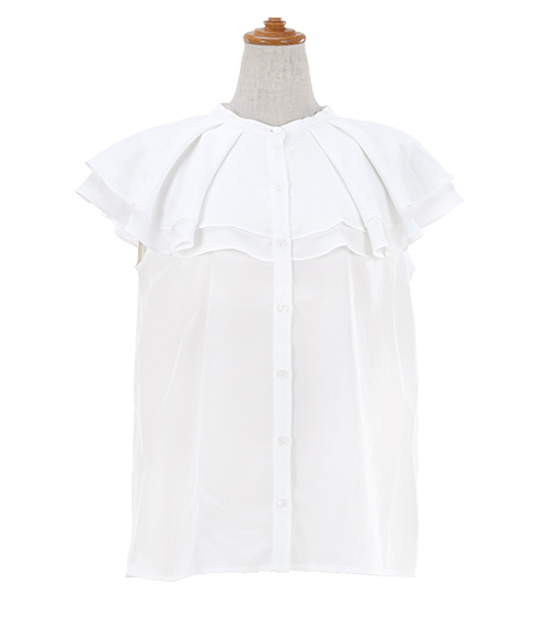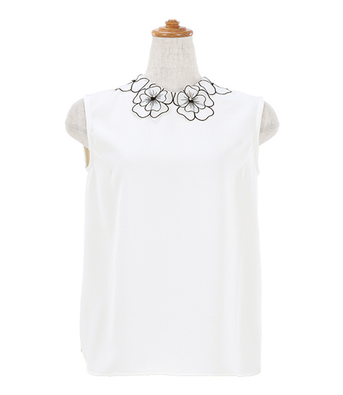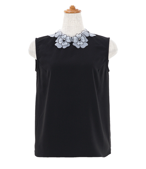 首元にポイントがありつつ、シンプルで合わせやすいフラワートップスと合わせると可愛い♪