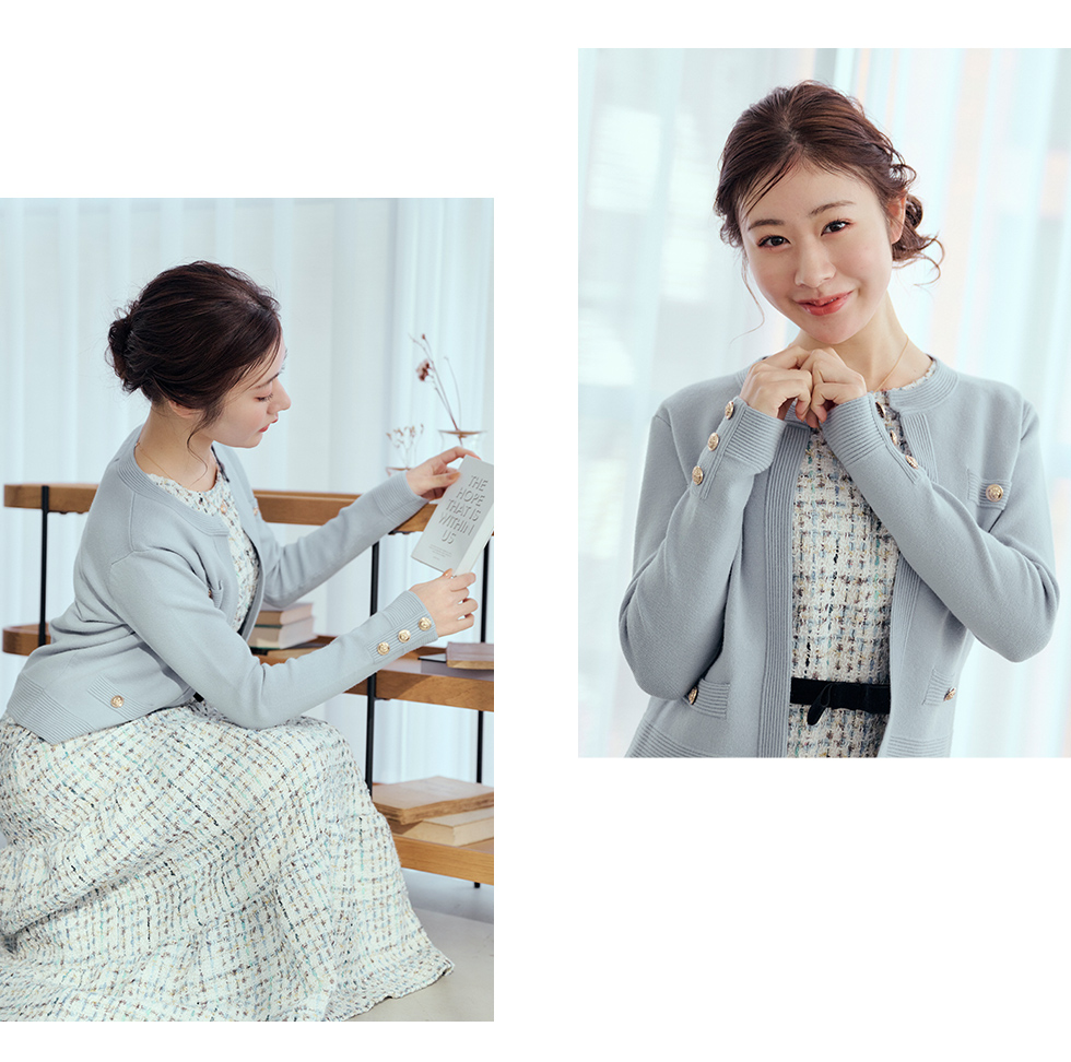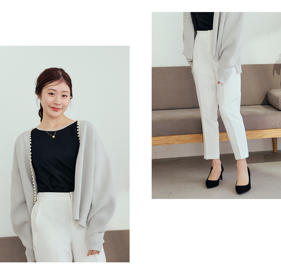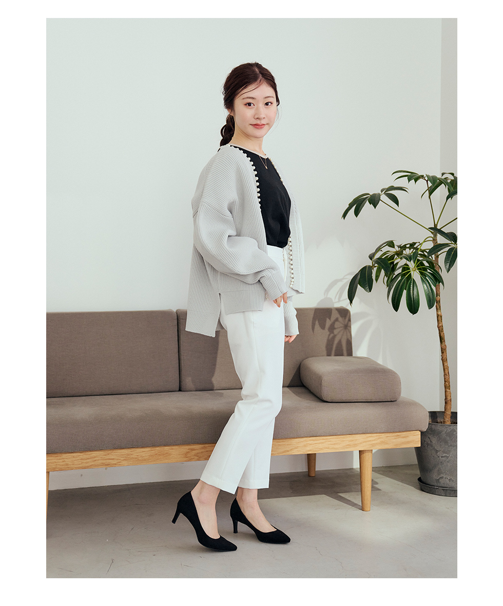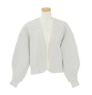 Cardigan : Pearl Trim Volume Cardigan_Size:M