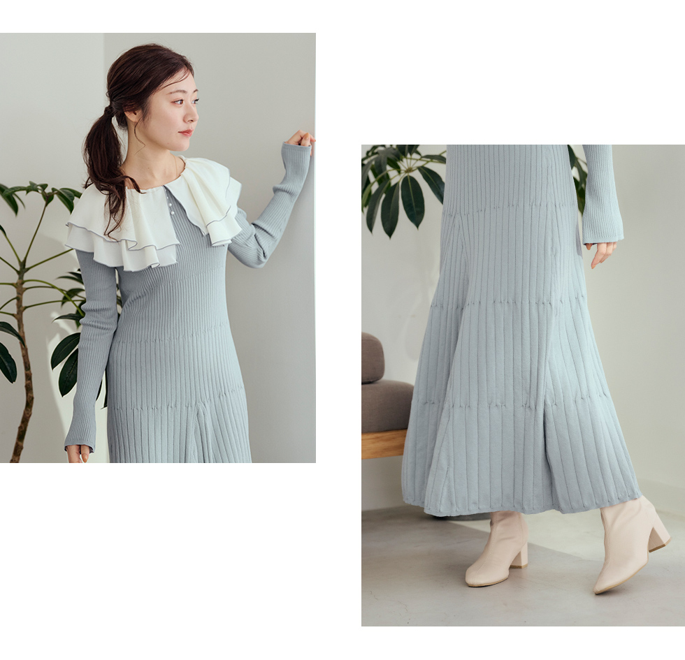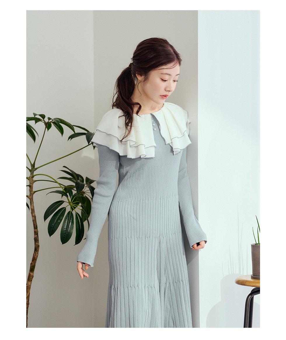 Onepiece : Ruffled Collar Classical Knit Onepiece_Size:M
