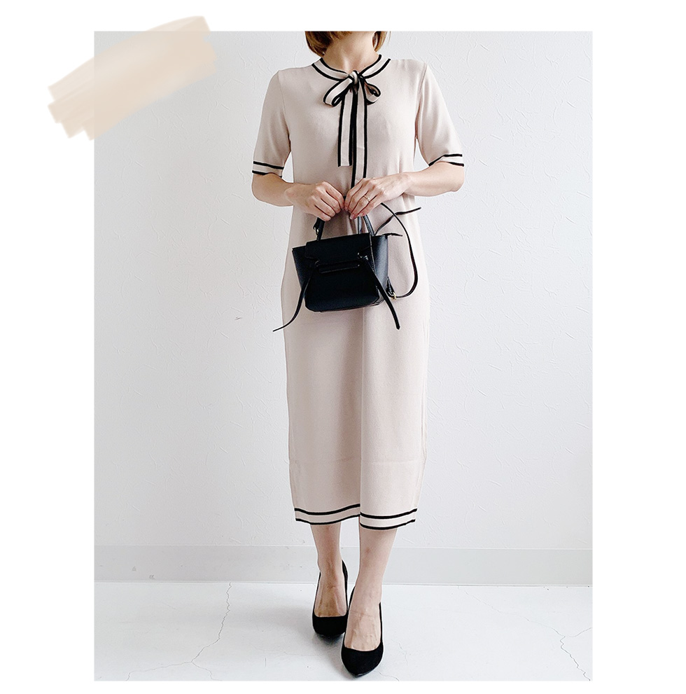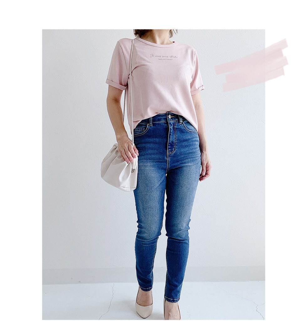 物足りないかも?と一瞬思うかもしれませんが、元々お持ちのメリハリを活かしてシンプルが映えます。紺のワンピースはこの夏間違いなく使える1枚です。カジュアルはシンプルの中にきれいめアイテムを入れると◎