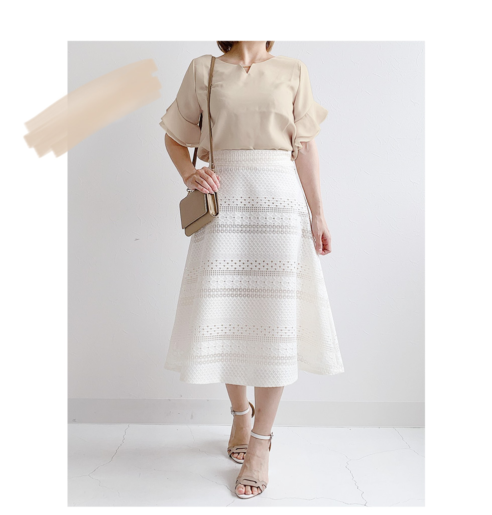 カジュアルもきれいめオフィススタイルも、シンプルな形の中にテイストでフェミニン感を入れるのがおすすめです。ベージュやアイボリーは夏らしい軽さがあり、1枚持っておくと便利なカラーです。