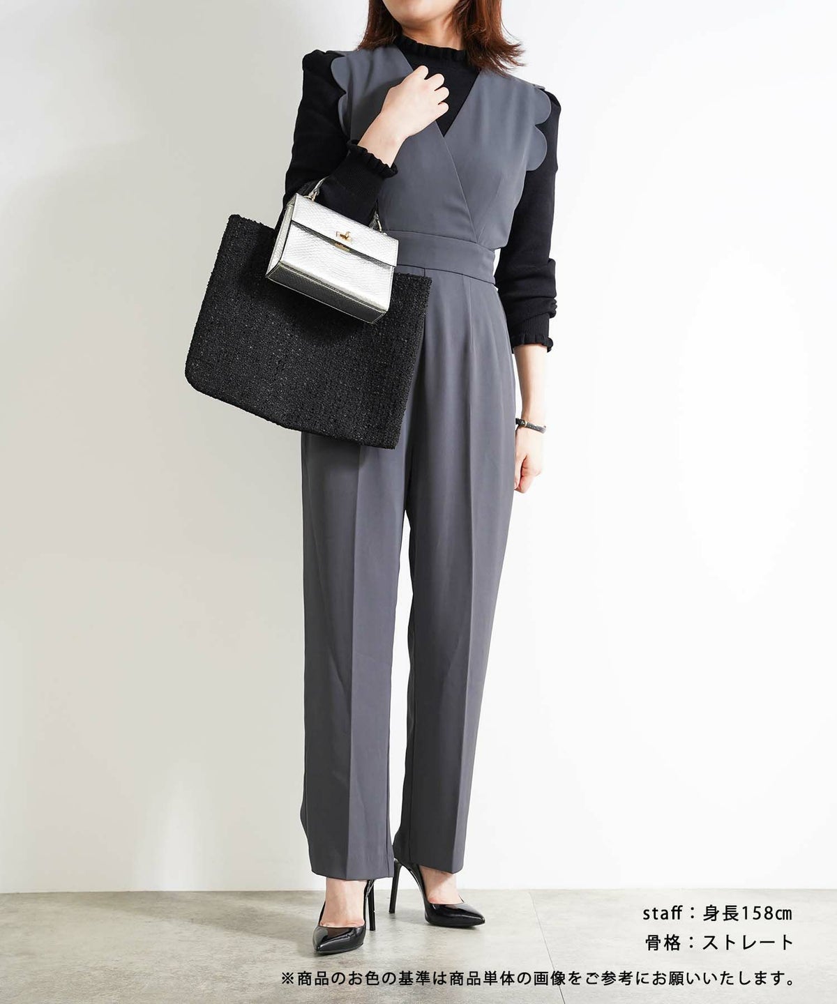 他の画像を見る 手洗い可 サロペットパンツ レディース きれいめ おしゃれ 黒 春秋冬 ウエスト絞り ゴム 大人 オフィス かわいい ジョイントスペース Occasion-SALE スカラップ サロペット パンツ Liala×PG 全2色|lpg731-1991【1】 当店通常価格 ¥ 15,400 のところ ¥ 9,350 税込 販売期間 2026/02/18 12:00 〜 2026/02/24 11:59 SALE WASHABLE automation_販売日時取得無し お気に入りに登録する