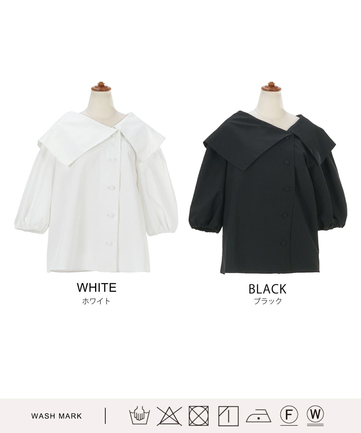 他の画像を見る ブラウス レディース ファッション トップス おしゃれ オシャレ オフィス エレガント きれいめ 長め 白 春 ジョイントスペース アシンメトリー BIGカラー バッグリボン パフスリーブ ブラウス Liala×PG 全2色|lpg811-1850【5】 ¥ 11,000 税込 SOLD OUT WASHABLE トップス ホワイト/ブラック 左右非対称なシルエットがお洒落。大きな襟とくるみボタンが特徴的なブラウス。シンプルで着まわしやすいのにスタイリッシュな印象を与える優秀な1着。 お気に入りに登録する