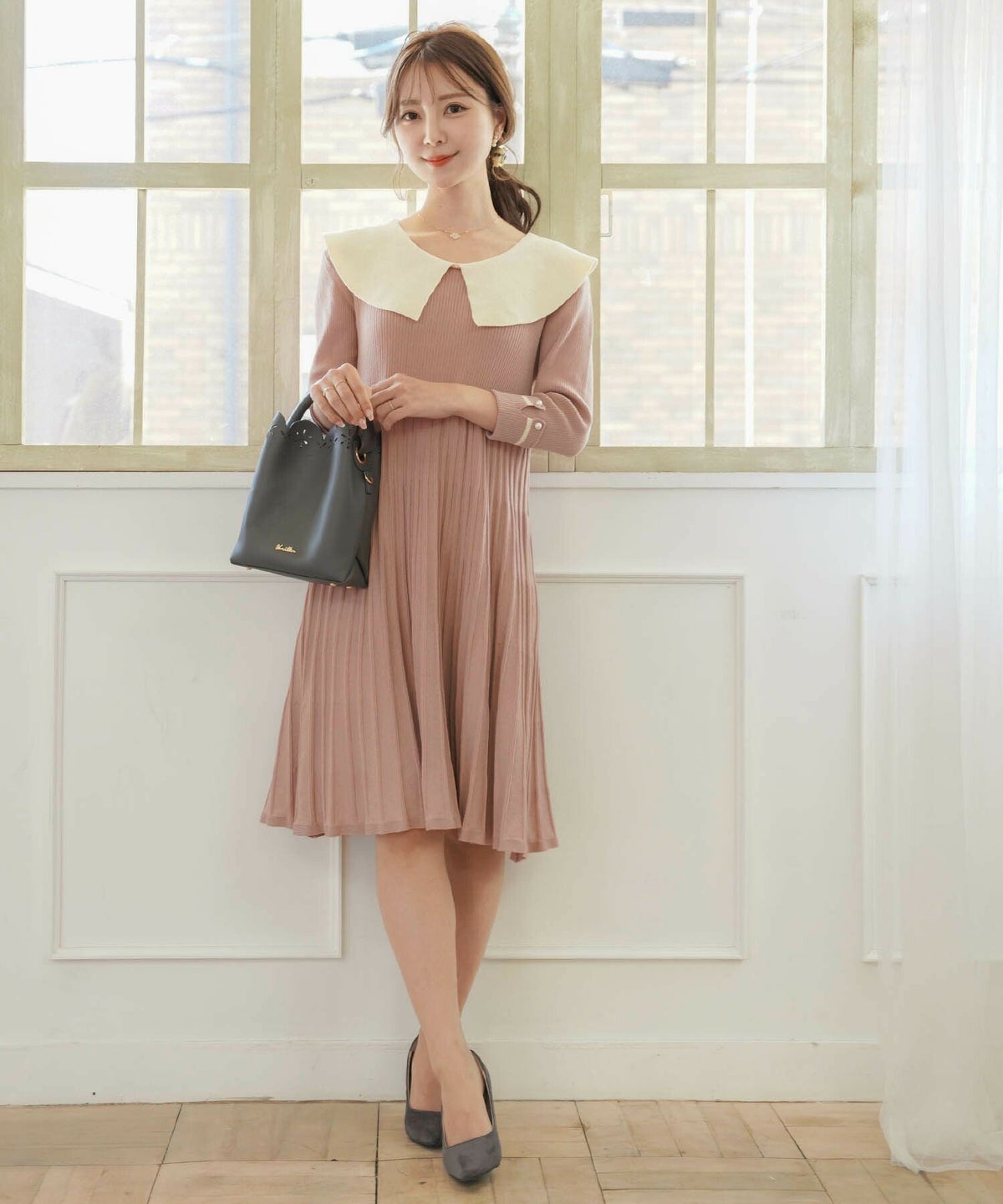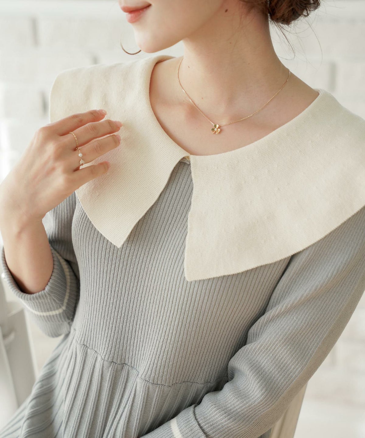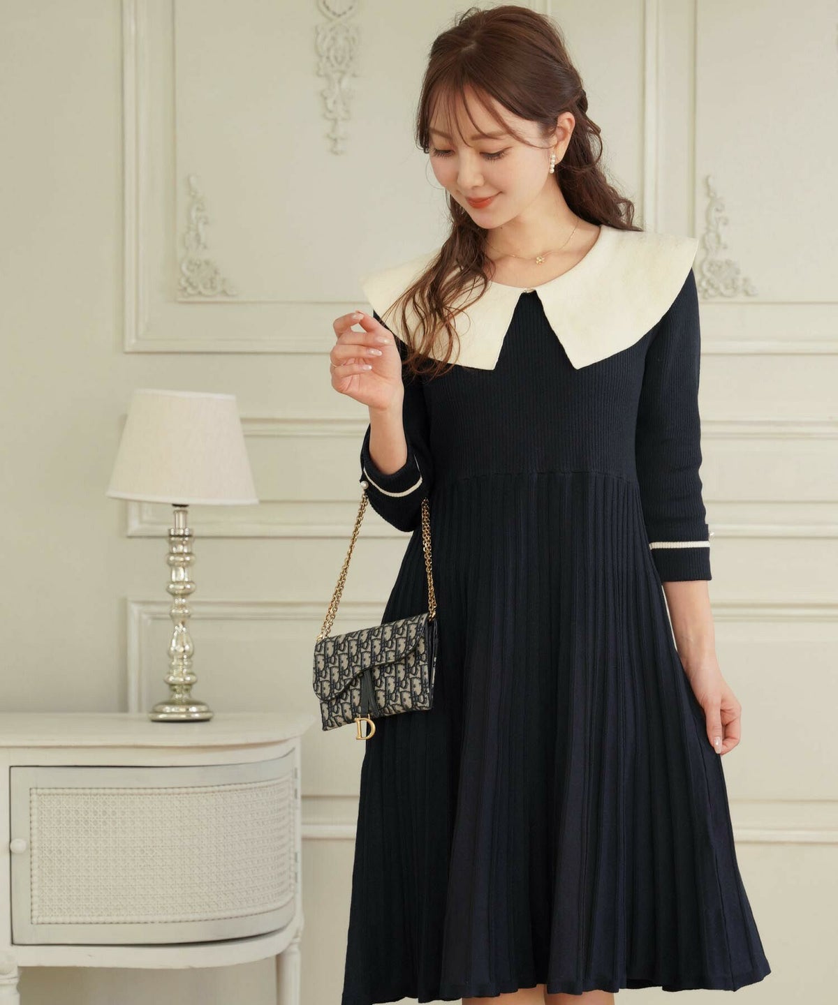 他の画像を見る レディース/ワンピース/プリーツ/膝丈/7分袖衿/配色/パール/フレア バイカラー ニット ワンピース ミディ丈 le reve vaniller 全3色 |lvn321-1641【1】 ¥ 13,090 税込 SOLD OUT for mama お気に入りに登録する