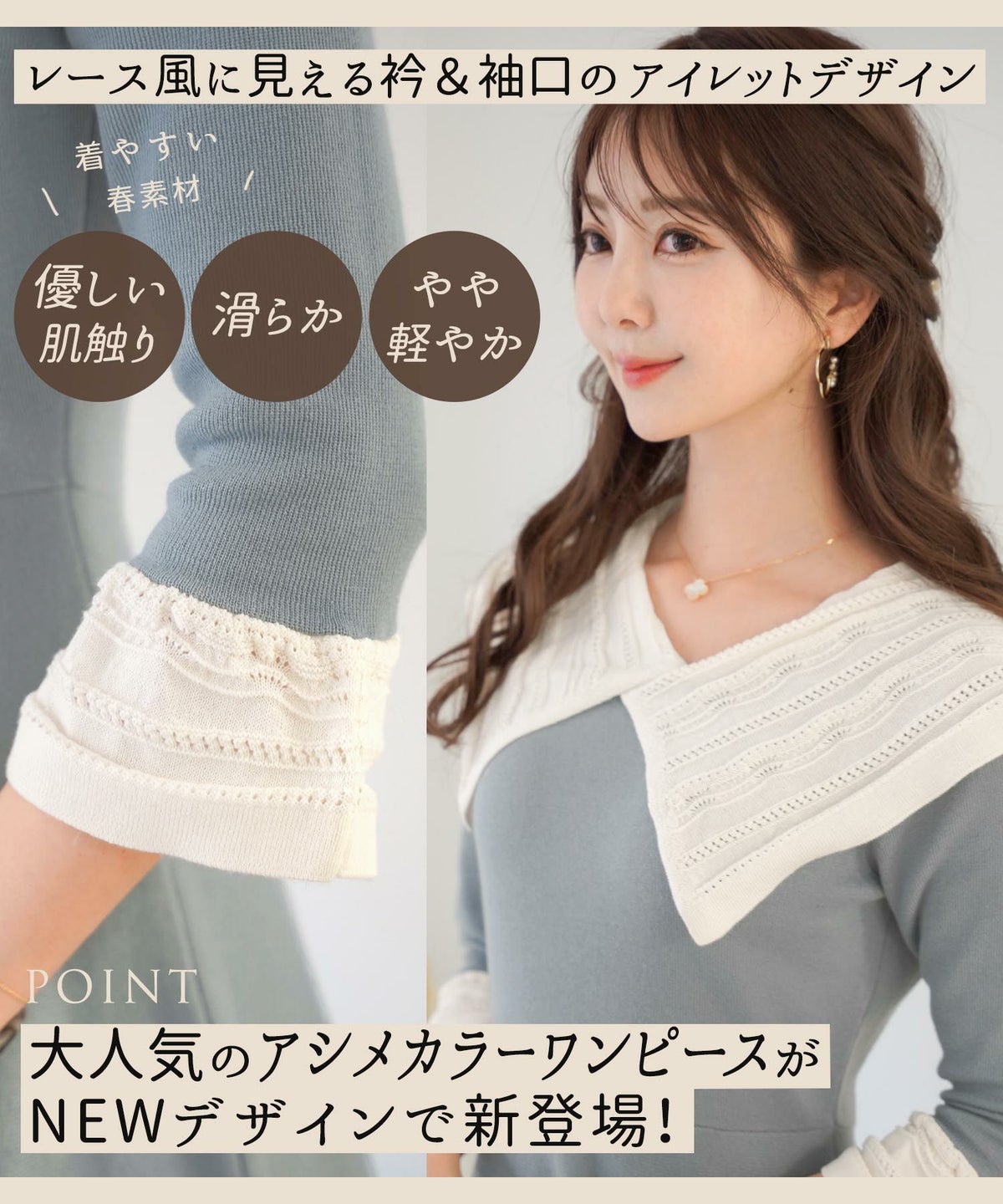 他の画像を見る ワンピース/ニット/ロング/バイカラー/衿/アシンメトリー/配色/フレアスリーブ レース風アイレット アシメ ニット ワンピース le reve vaniller 全3色 |lvn321-1643【1】 ¥ 13,090 税込 SOLD OUT for mama お気に入りに登録する