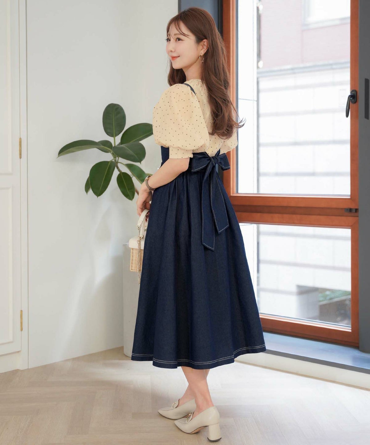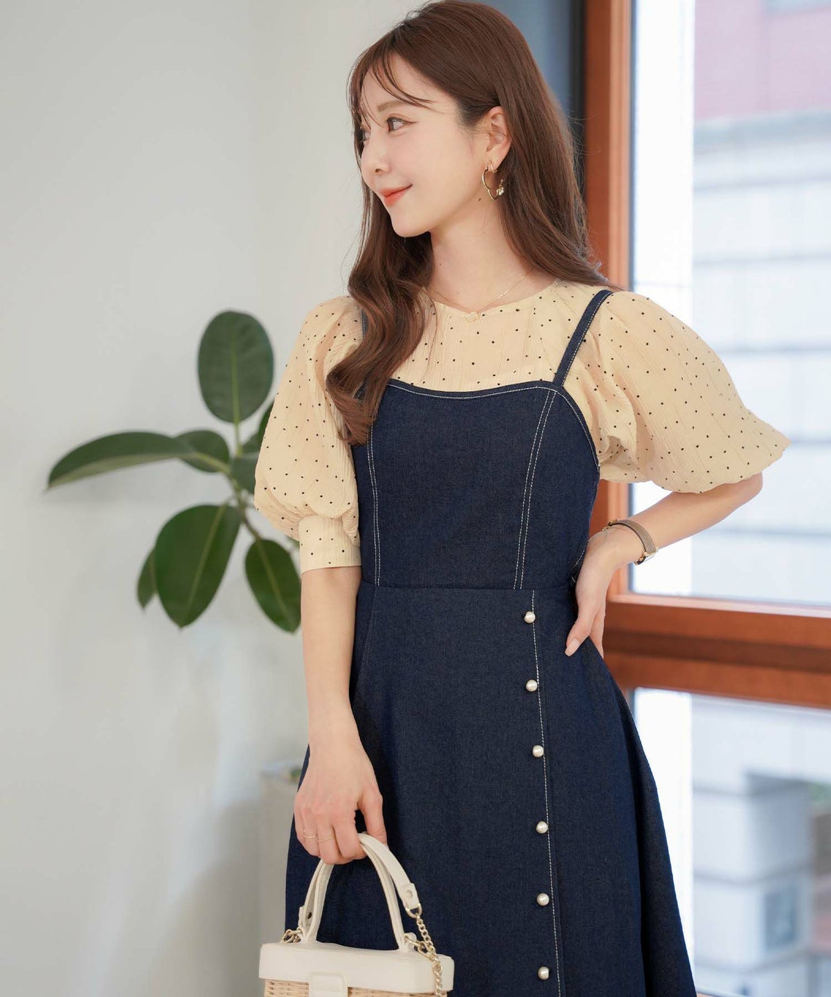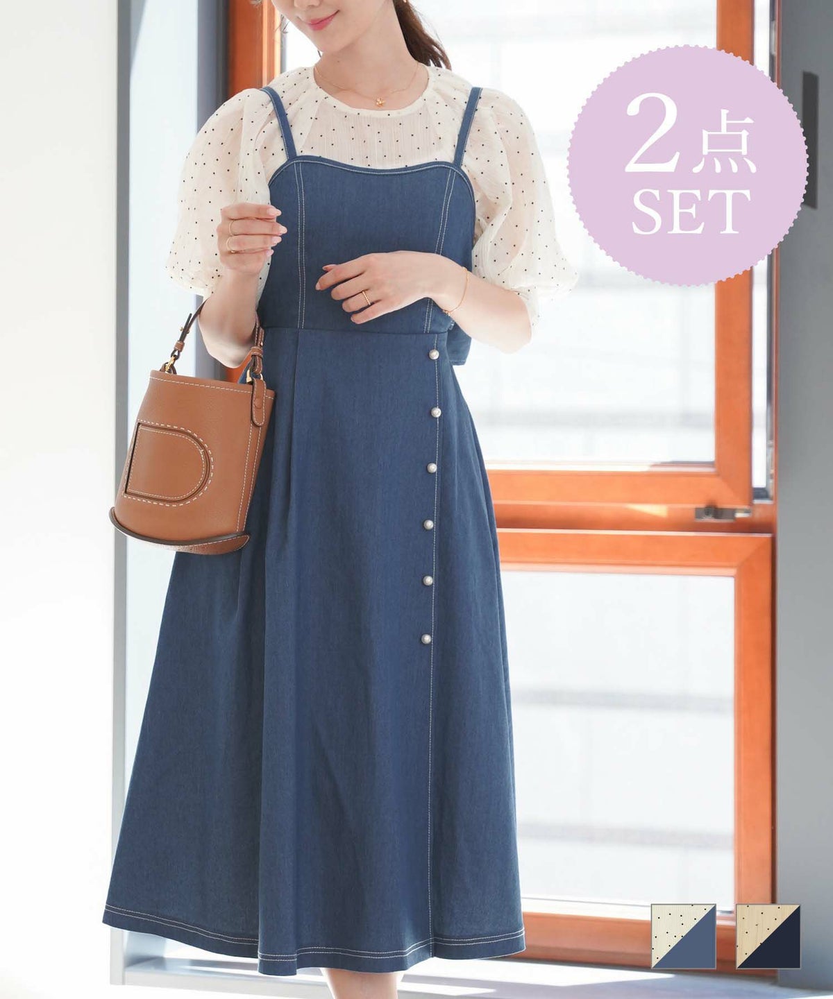 他の画像を見る セット商品/ブラウス/ワンピース/デニム/リボン/ドット 2点セット! フロッキードット シアー ブラウス&デニム バックリボン ワンピース le reve vaniller 全2色|lvn921-1675【1】 当店通常価格 ¥ 19,470 のところ ¥ 18,150 税込 SOLD OUT for mama 2点セット! フロッキードット シアー ブラウス&デニム バックリボン ワンピース le reve vaniller お気に入りに登録する