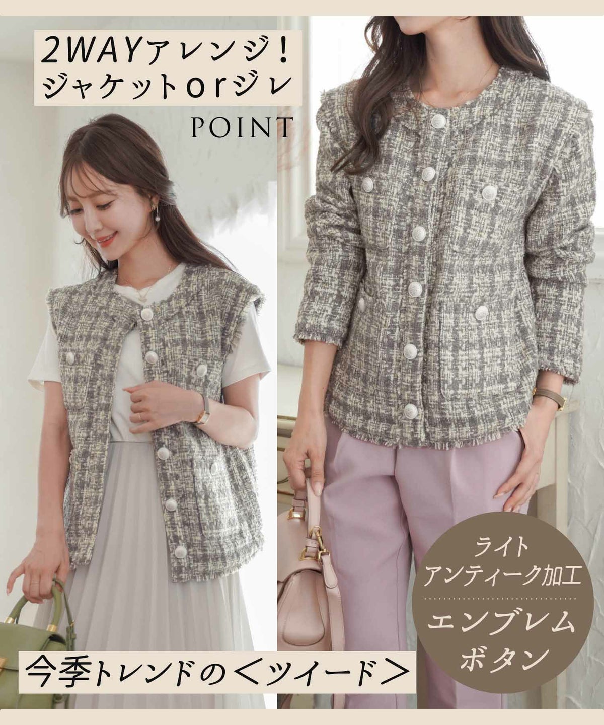 他の画像を見る アウター/ジャケット/ジレ/アウター/ツイード/フリンジ/長袖 2WAY ツイード ジレ ジャケット le reve vaniller 全2色 |lvn212-1547【1】 ¥ 13,750 税込 SOLD OUT お気に入りに登録する